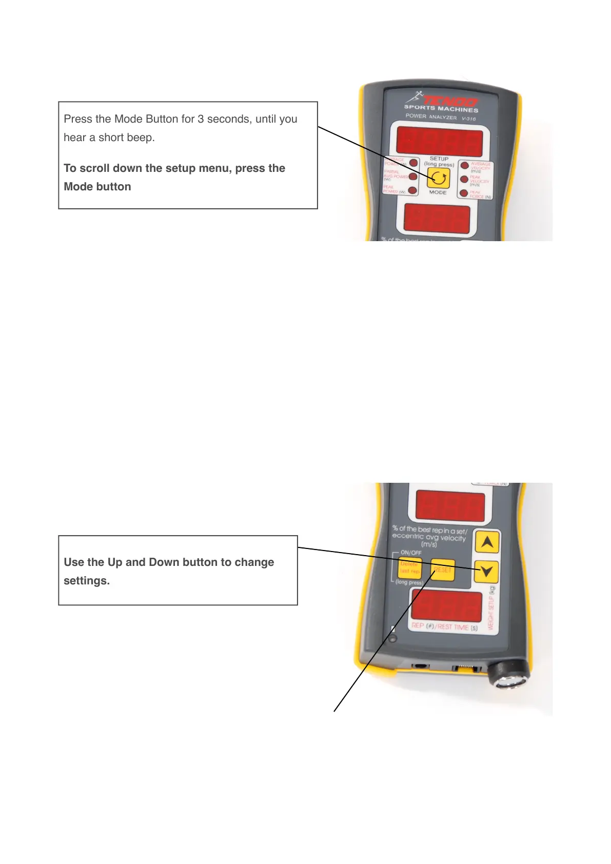 To scroll down the setup menu, press the
