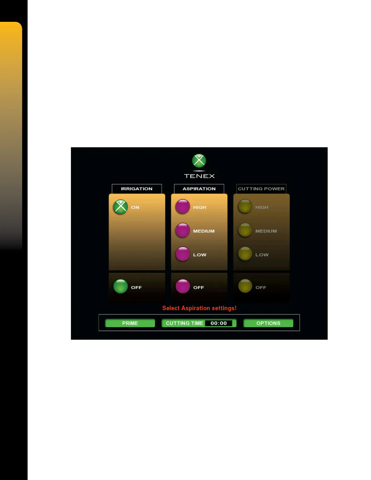 Controlled by depressing the Foot Pedal, aspiration is intended to remove cut tissue and uid