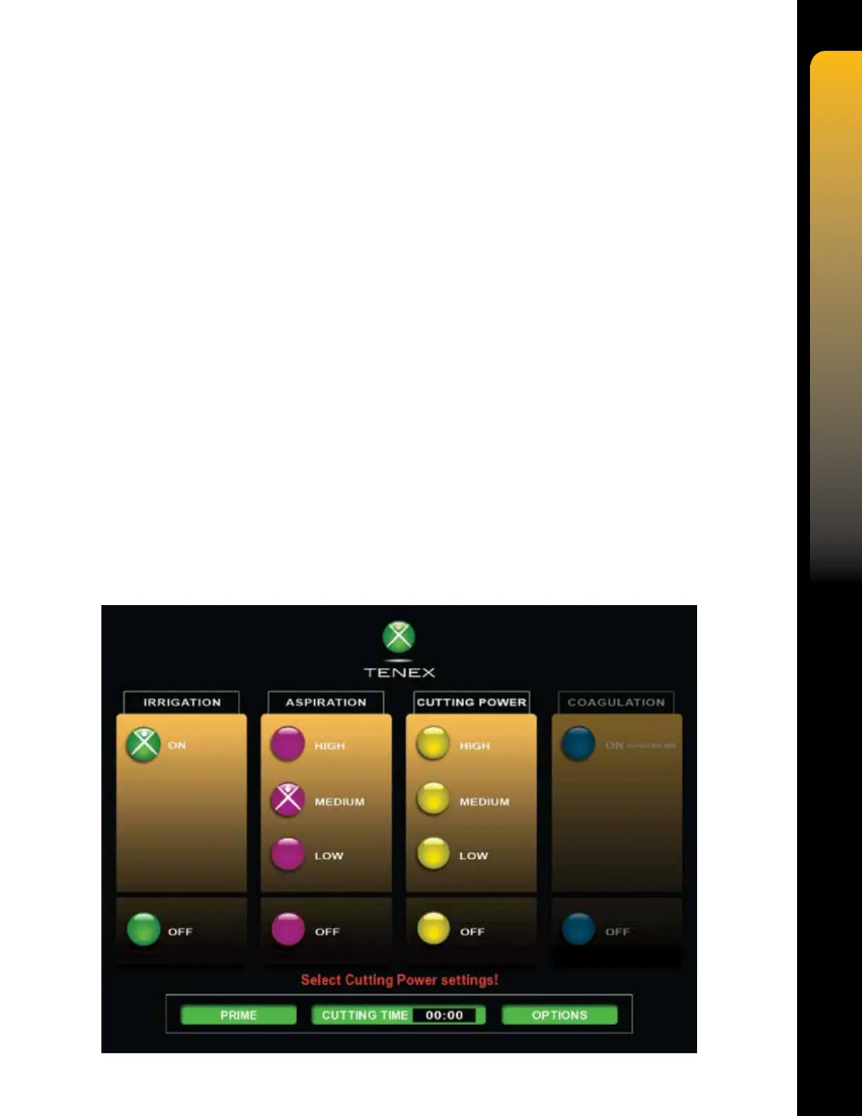 soft tissue at the target site. When CUTTING POWER is selected to LOW, MEDIUM, or HIGH,