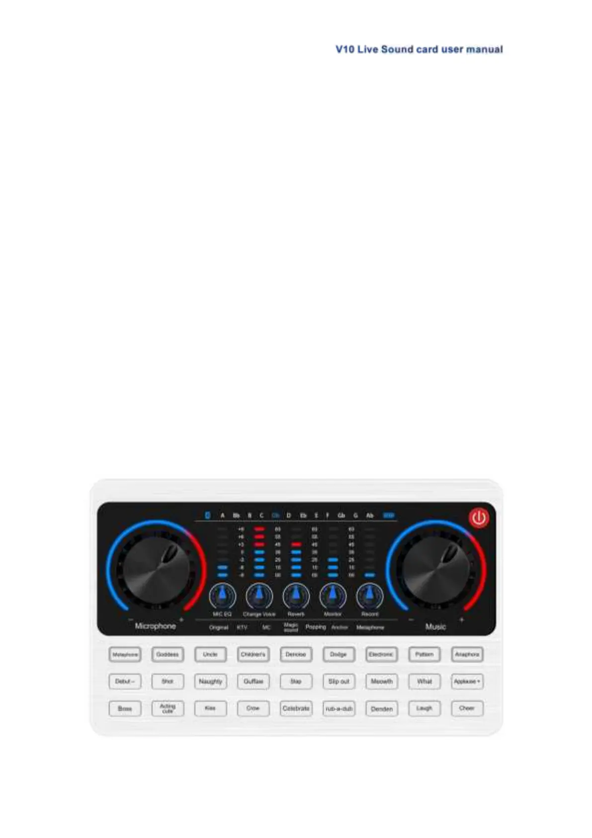 The V10 sound card is a professional recording and live streaming digital audio mixer,