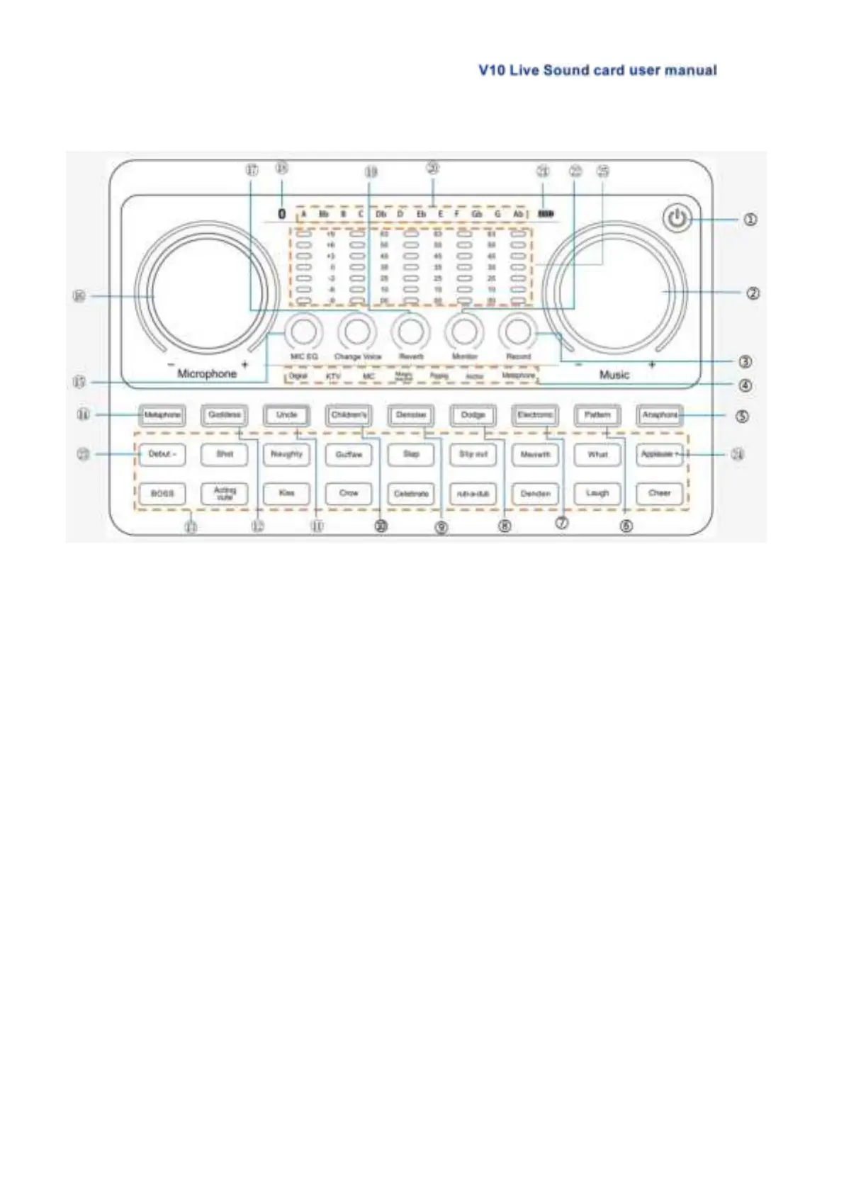 4. Mode light:Lights up to show the current corresponding sound mode.