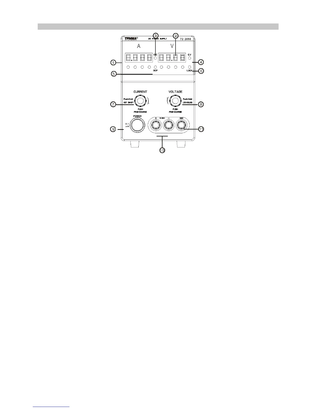 2. Voltmeter displays the setup value of the output voltage.