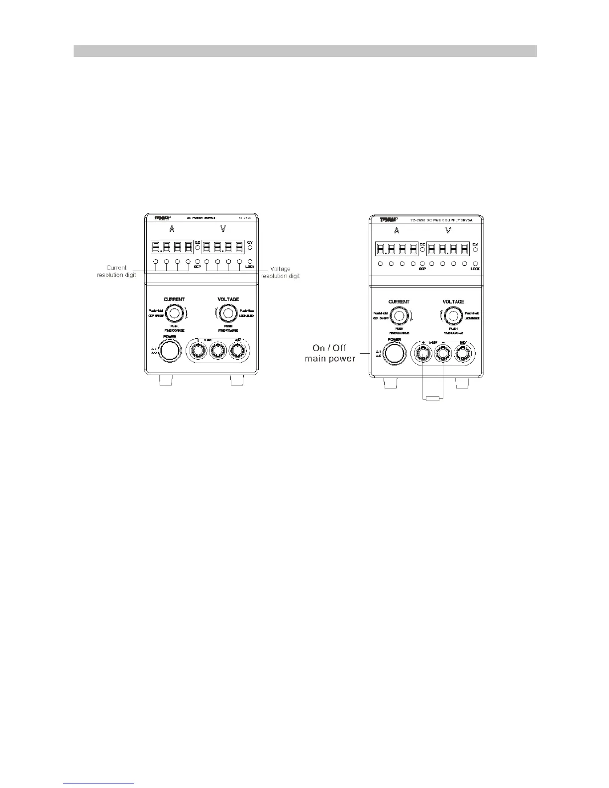 100mA. The voltage and current adjusting resolution can be changed by pressing