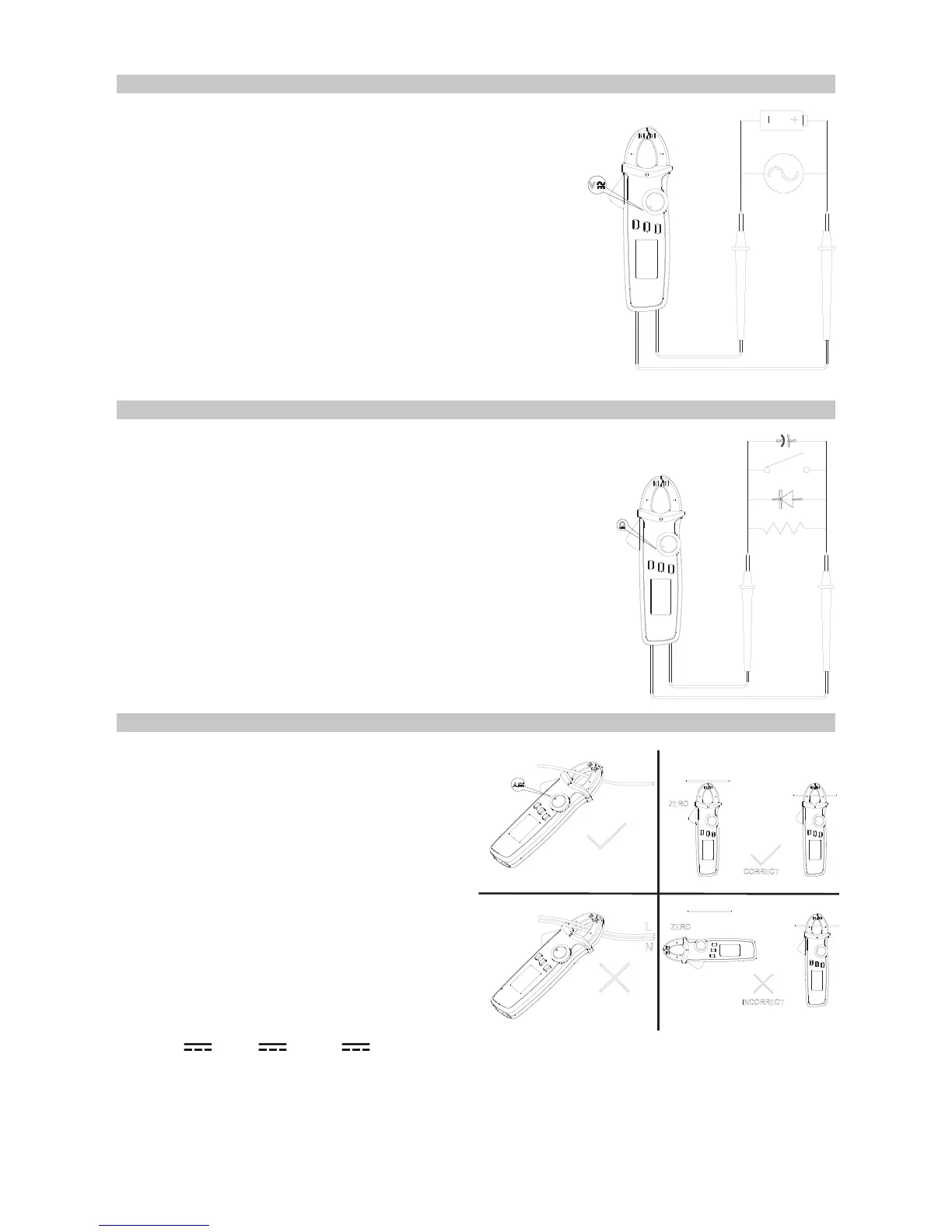 • Press ZERO before measurement to set the reading to zero. If it does not return to
