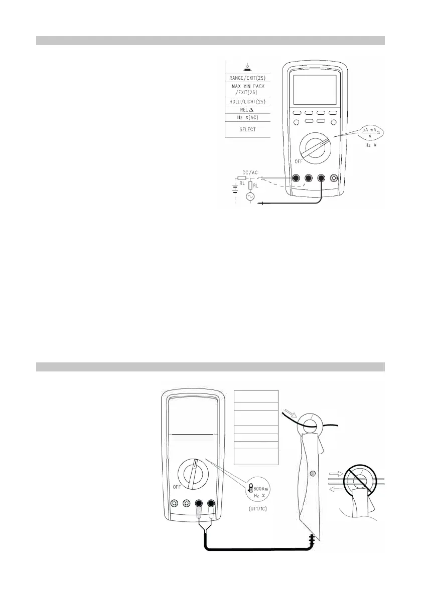 • Before the instrument is connected in series to the circuit to be tested, cut off the