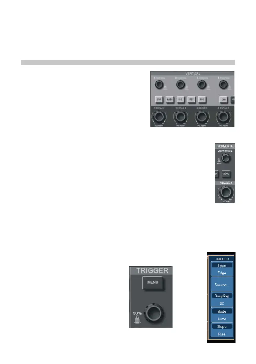 • The trigger level rotary control adjusts the trigger level. The display value changes