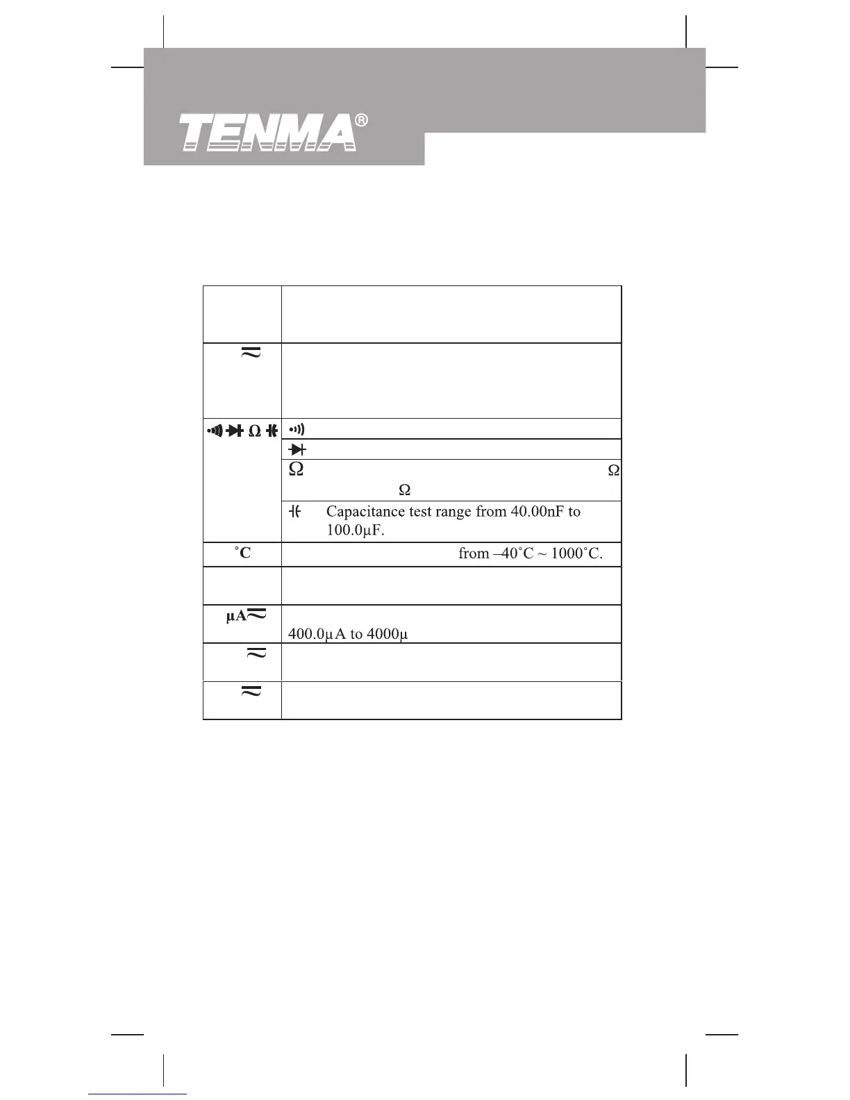AC voltage measurement range from 4.000V to