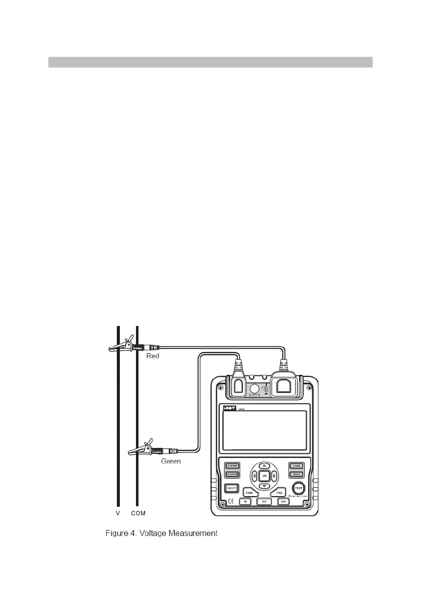 To measure voltage, set up the meter as in Figure 4 and perform the steps