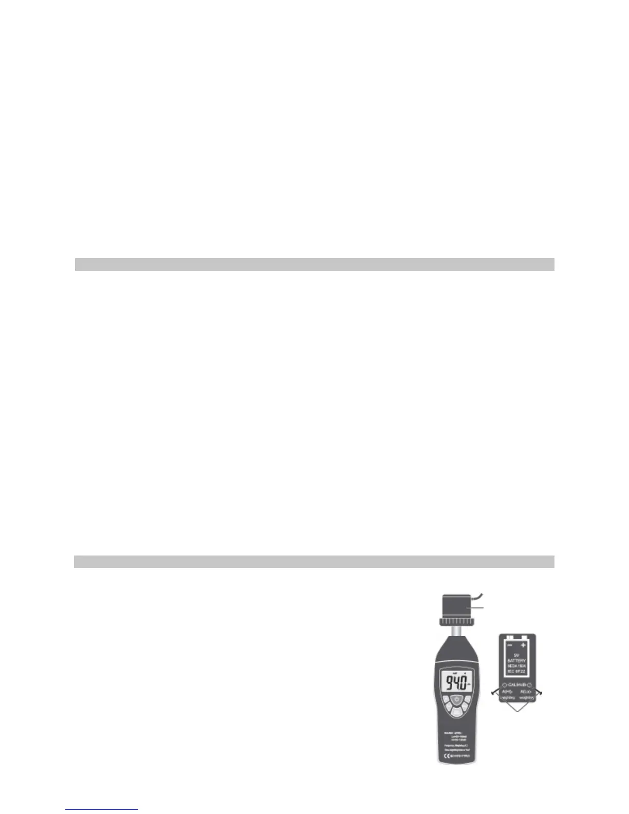 • Turn on power and select the desired response time and weighting. If the sound