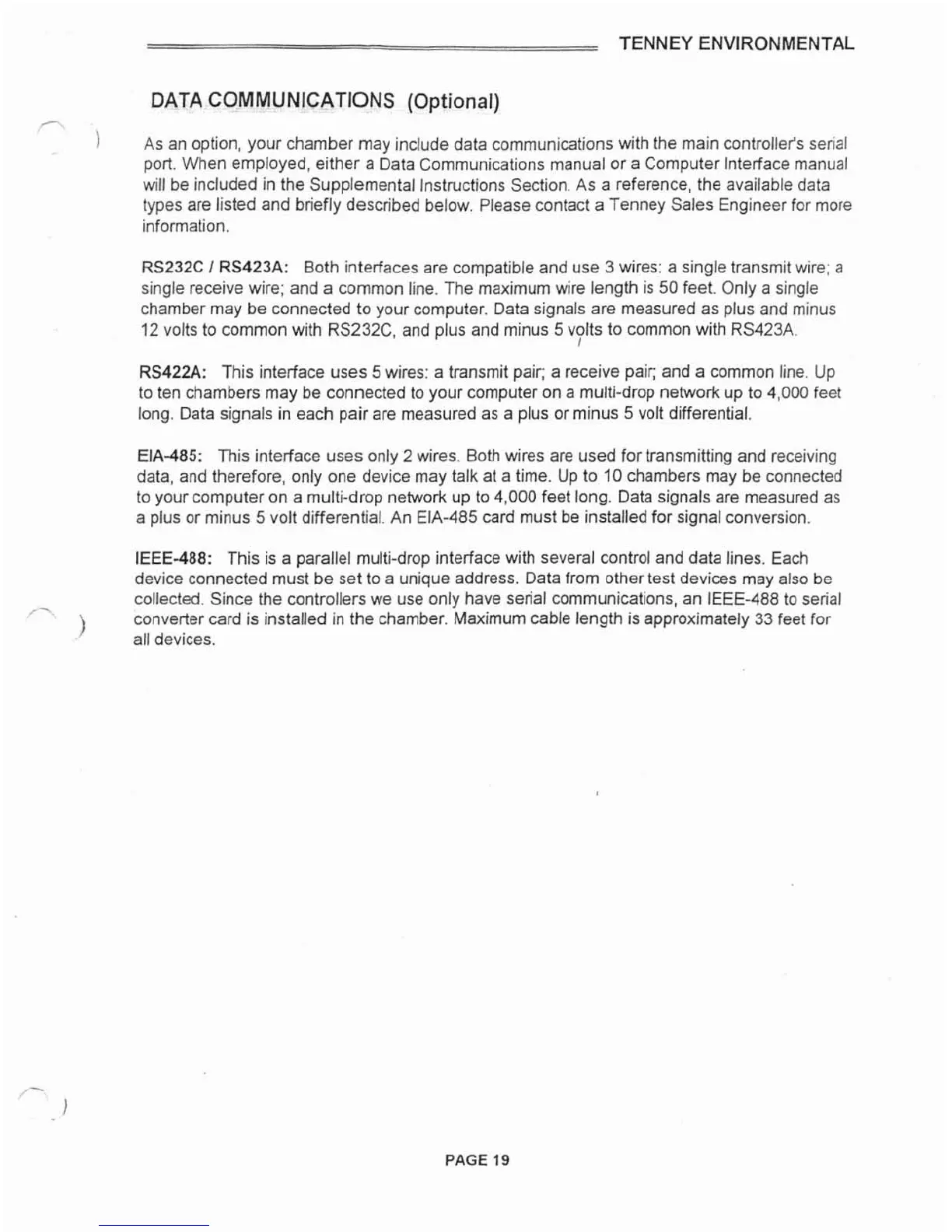 to ten chambers may be connected to your computer on a multi-drop network up to 4,000 feet