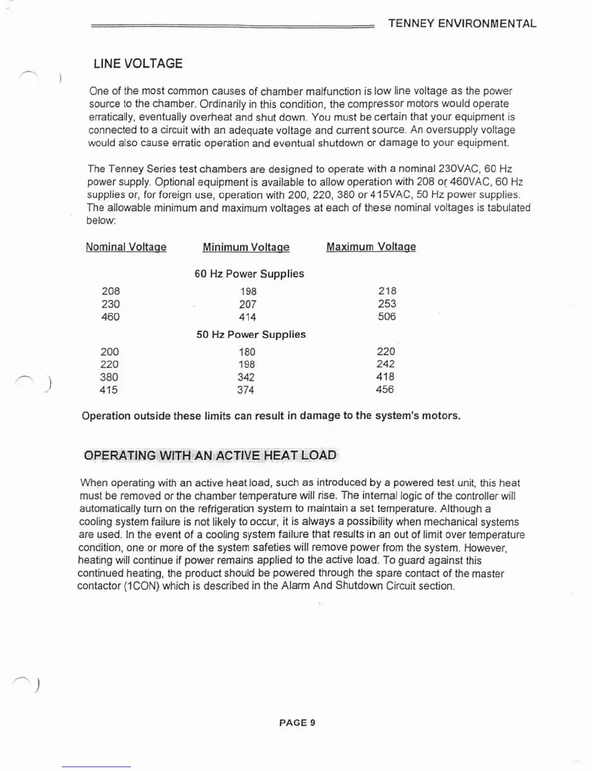 The Tenney Series test chambers are designed to operate with a nominal