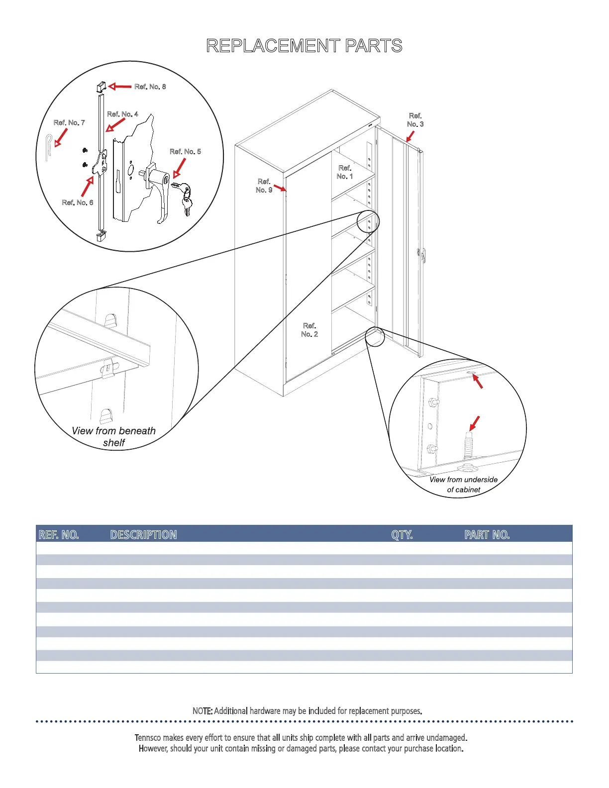 Tennsco makes every effort to ensure that all units ship complete with all parts and arrive undamaged.