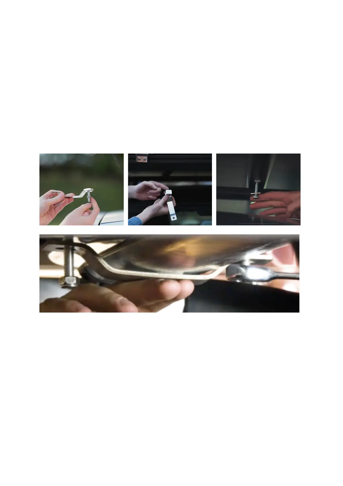 2. Fix the TentBox to your roof bars at 4 points (4 corners), using the fixing parts, as