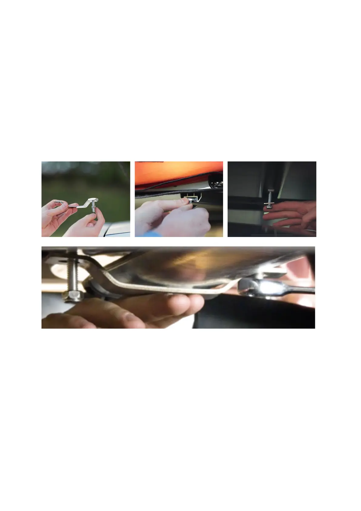Step 4: Using the nuts provided, tighten the larger plate to the hanging bolts, so that
