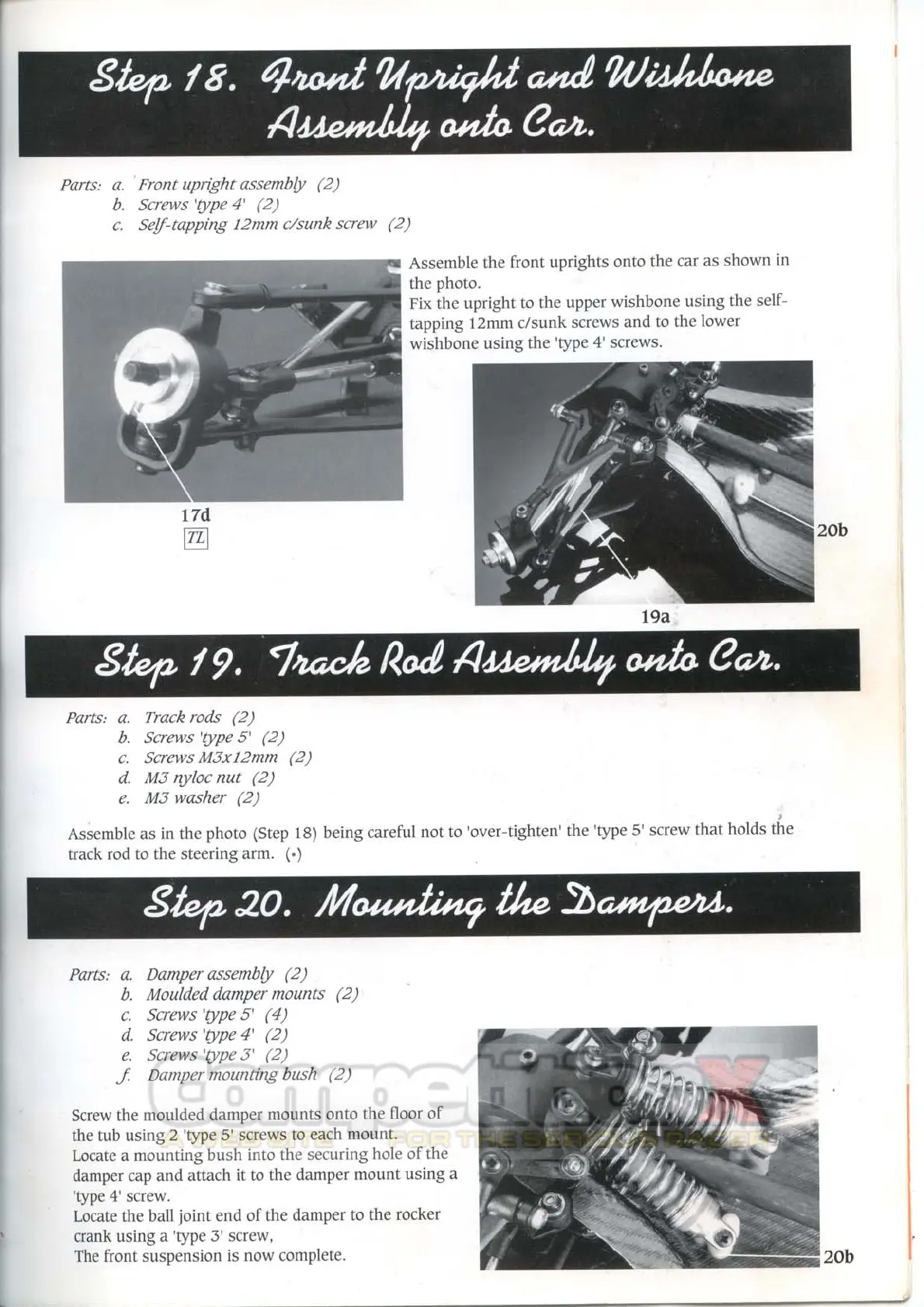 Tenth Technology Predator - Step 18. Front Upright and Wishbone Assembly onto Car; Step 20. Mounting the Dampers