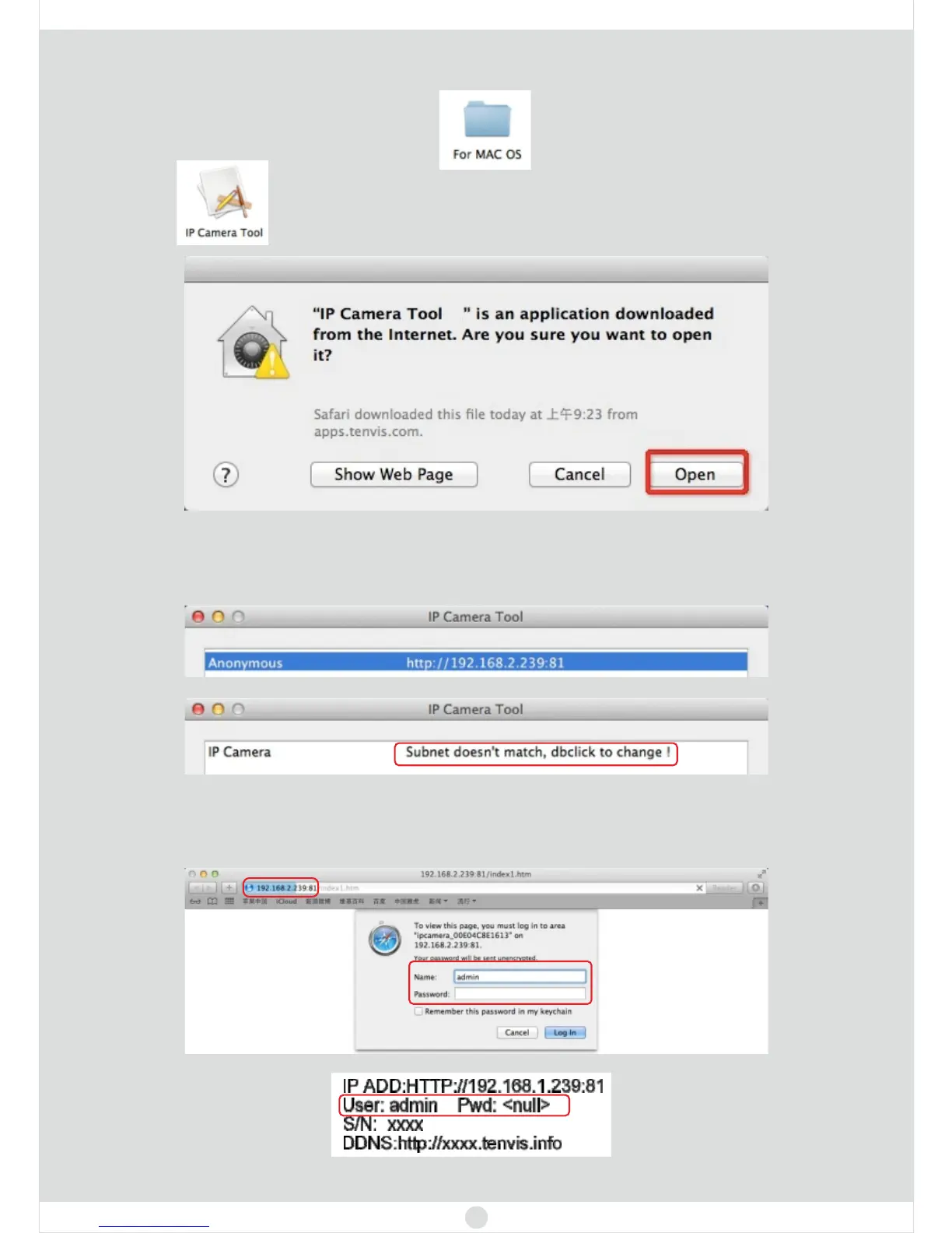 will be opened automatically to display the camera login page.
