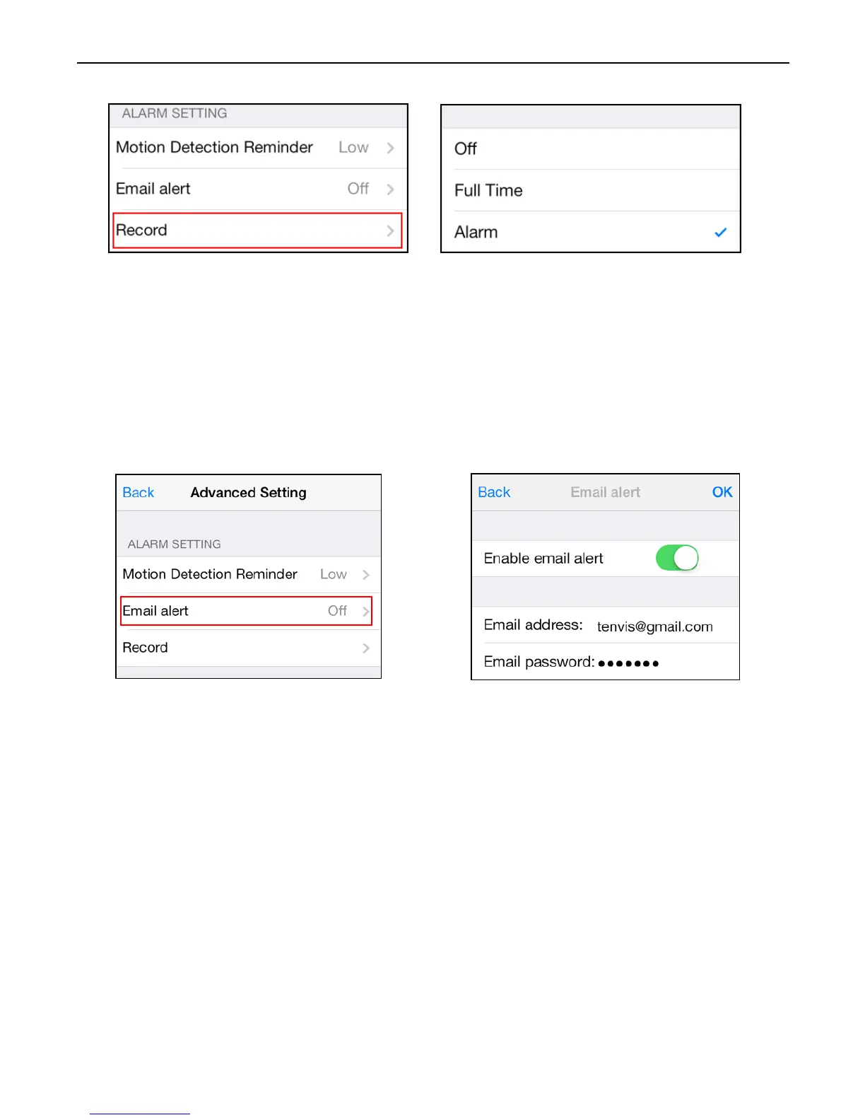 3. Set up e-mail alarm if you want the camera to send snapshot pictures