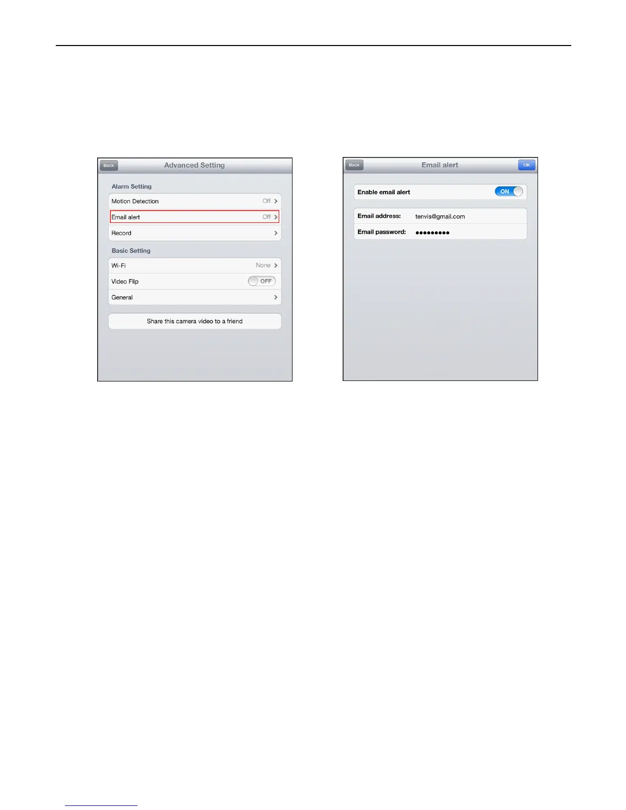 3. Set up e-mail alarm if you want the camera to send snapshots to your
