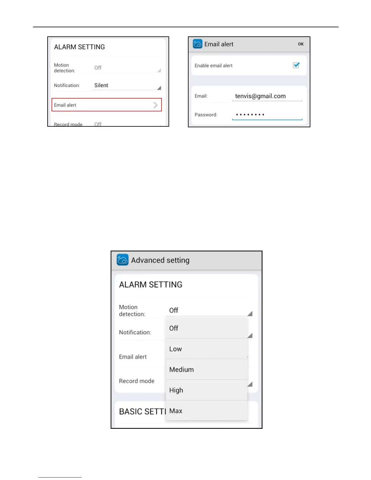 enable motion detection of the camera. Choose the detection