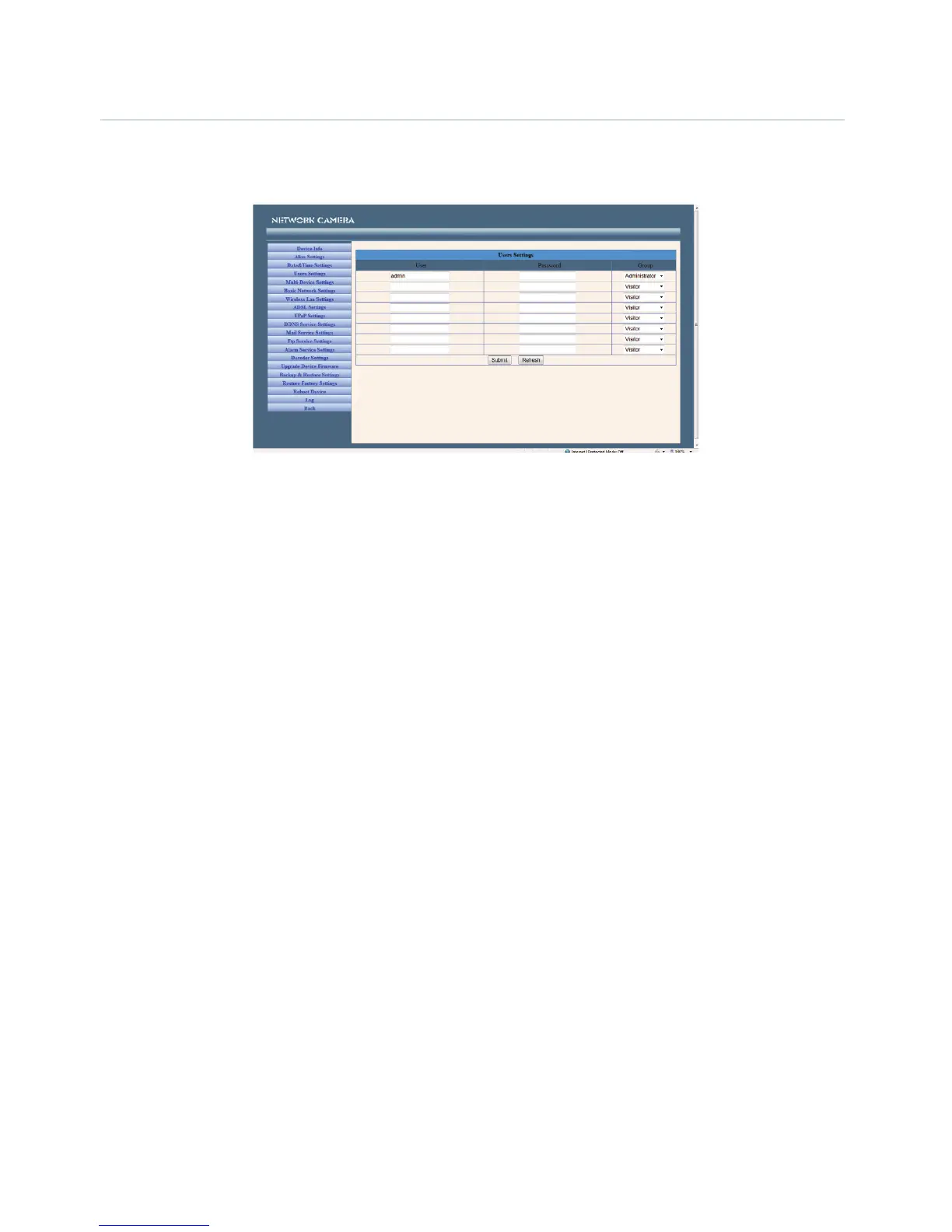 User Settings - You can configure up to 8 user names and passwords and the level of users as