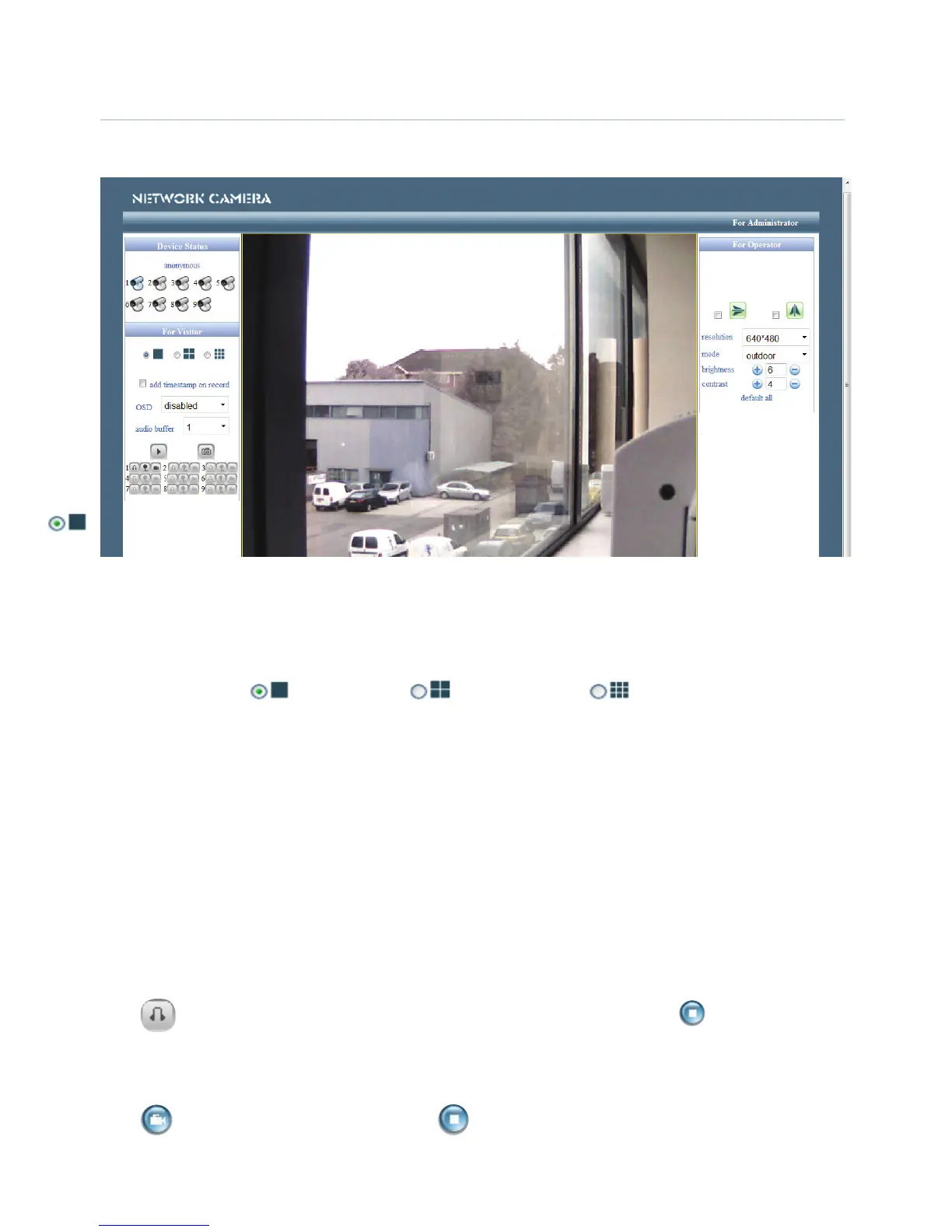 Click to enable the audio stream for the camera. The icon will change to . Click this to stop