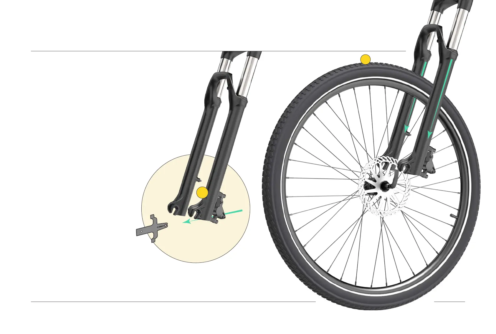 the front fork to the front wheel; make