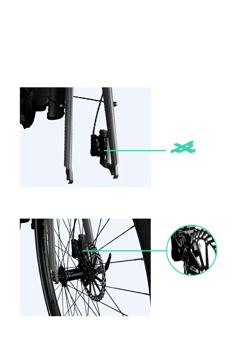 Install the front wheel; make sure that the brake disc is