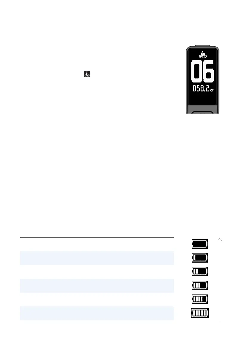 remind the user of charging the e-bike immediately. The battery level is displayed as