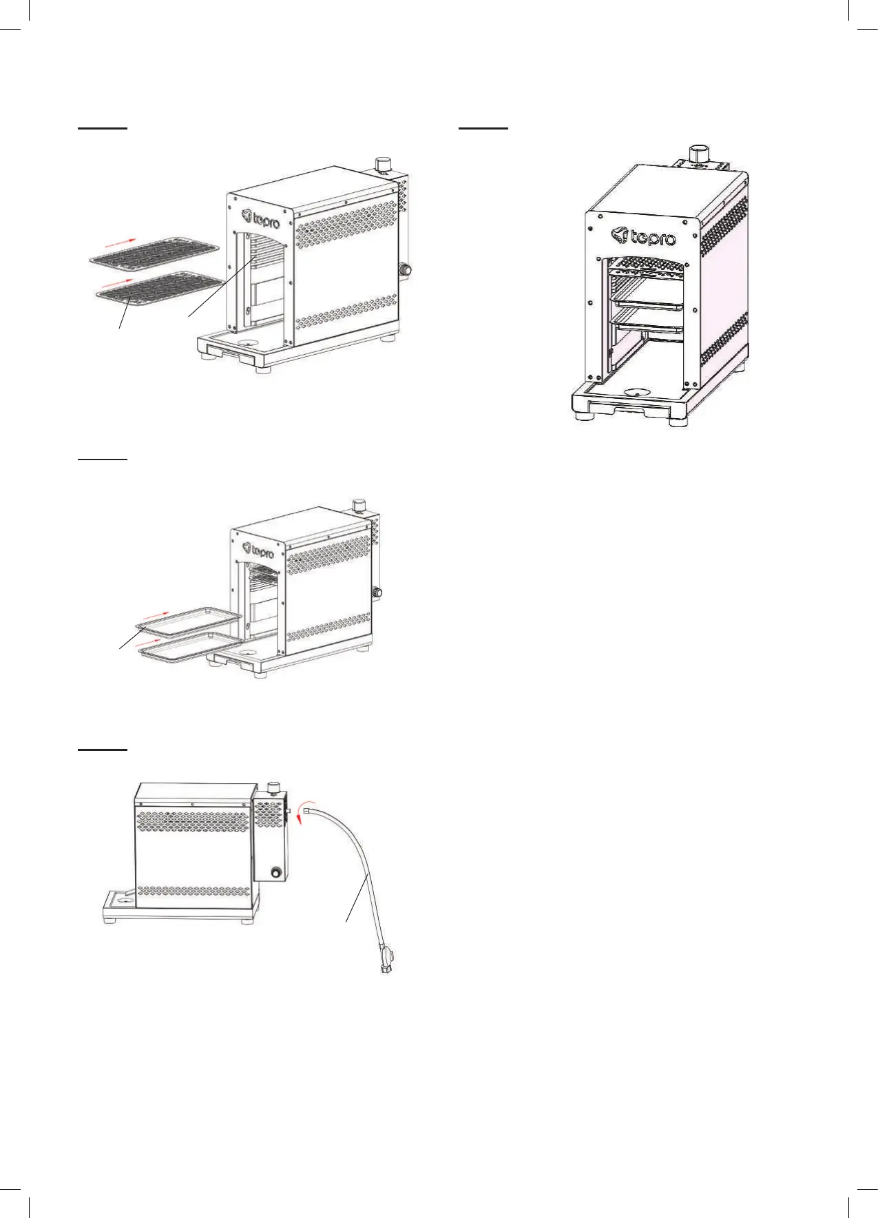 Slide in the BBQ trays (C) under the BBQ grates.