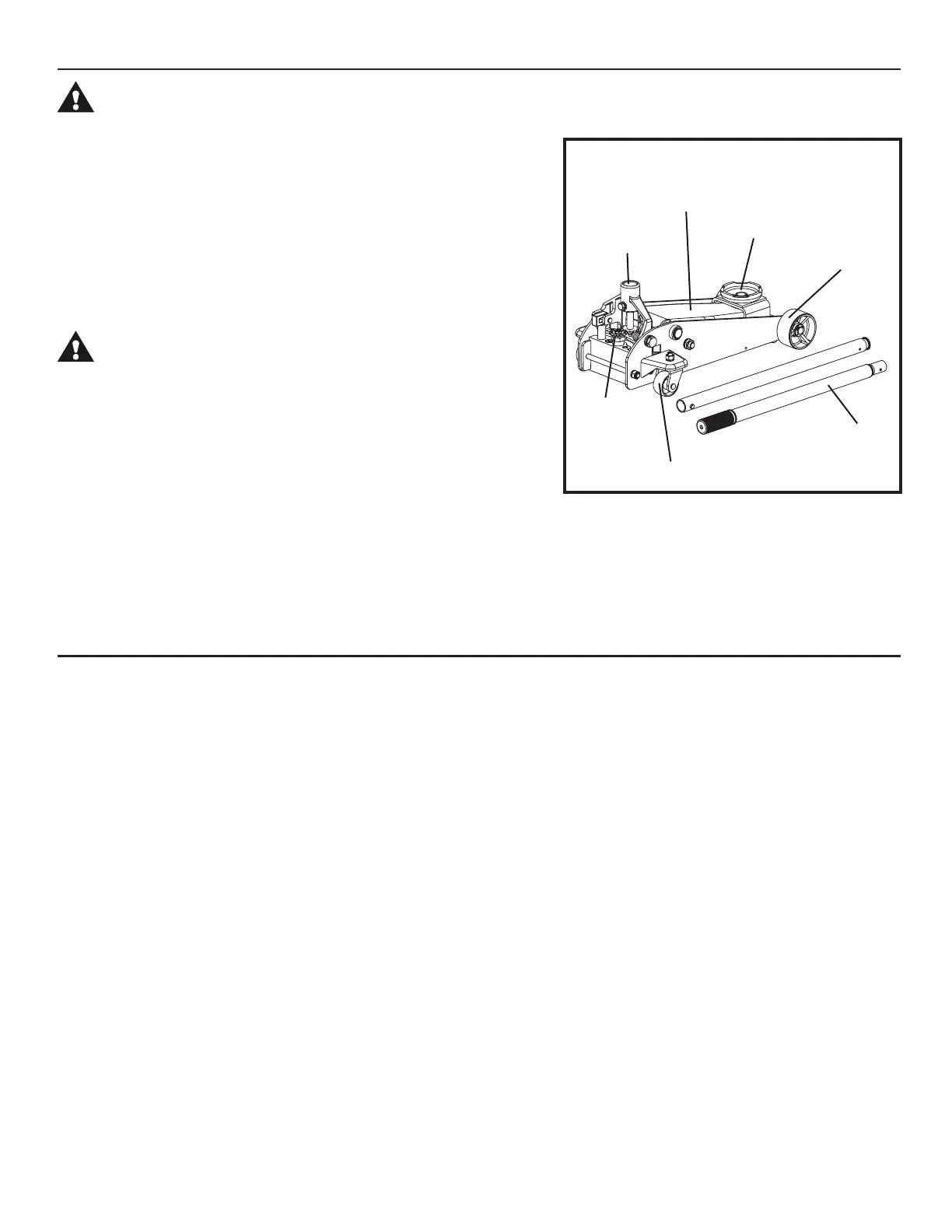 c. Usando el otro gato, baje la carga girando el mango de operaciones a la izquierda, pero no más de una ½ vuelta.