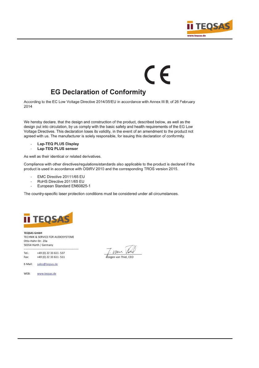 TEQSAS LAP-TEQ PLUS - 12 Declaration of Conformity