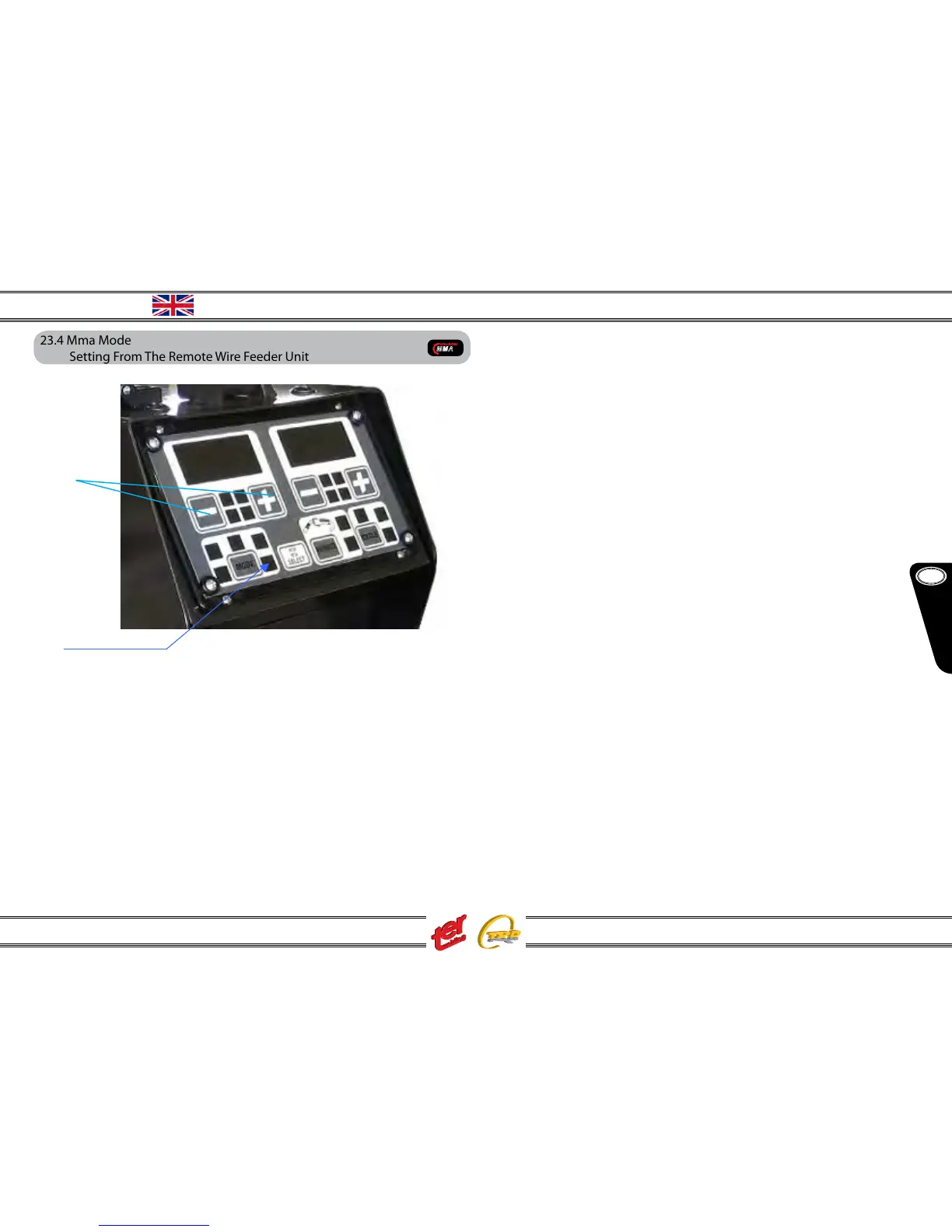 (1) press the key MODE until icon “MMA-stick” light on