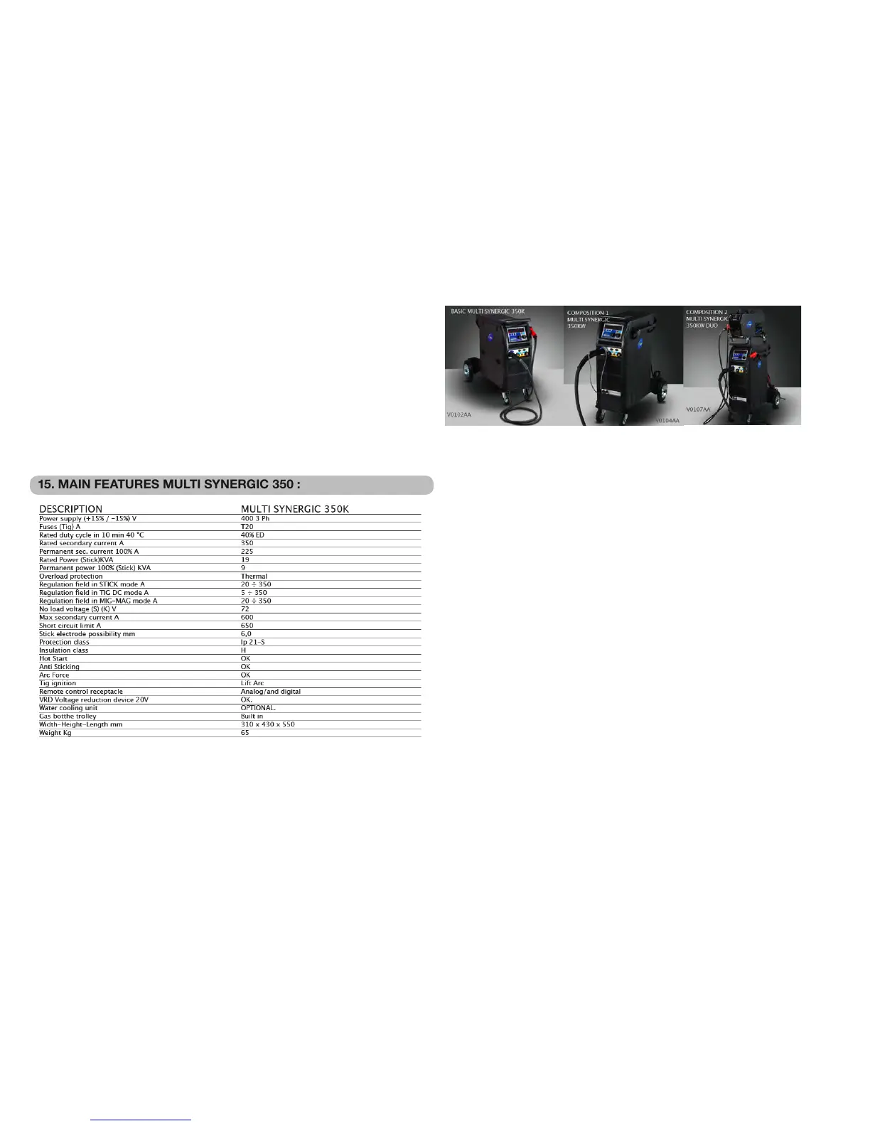15. MAIN FEATURES MULTI SYNERGIC 350 :