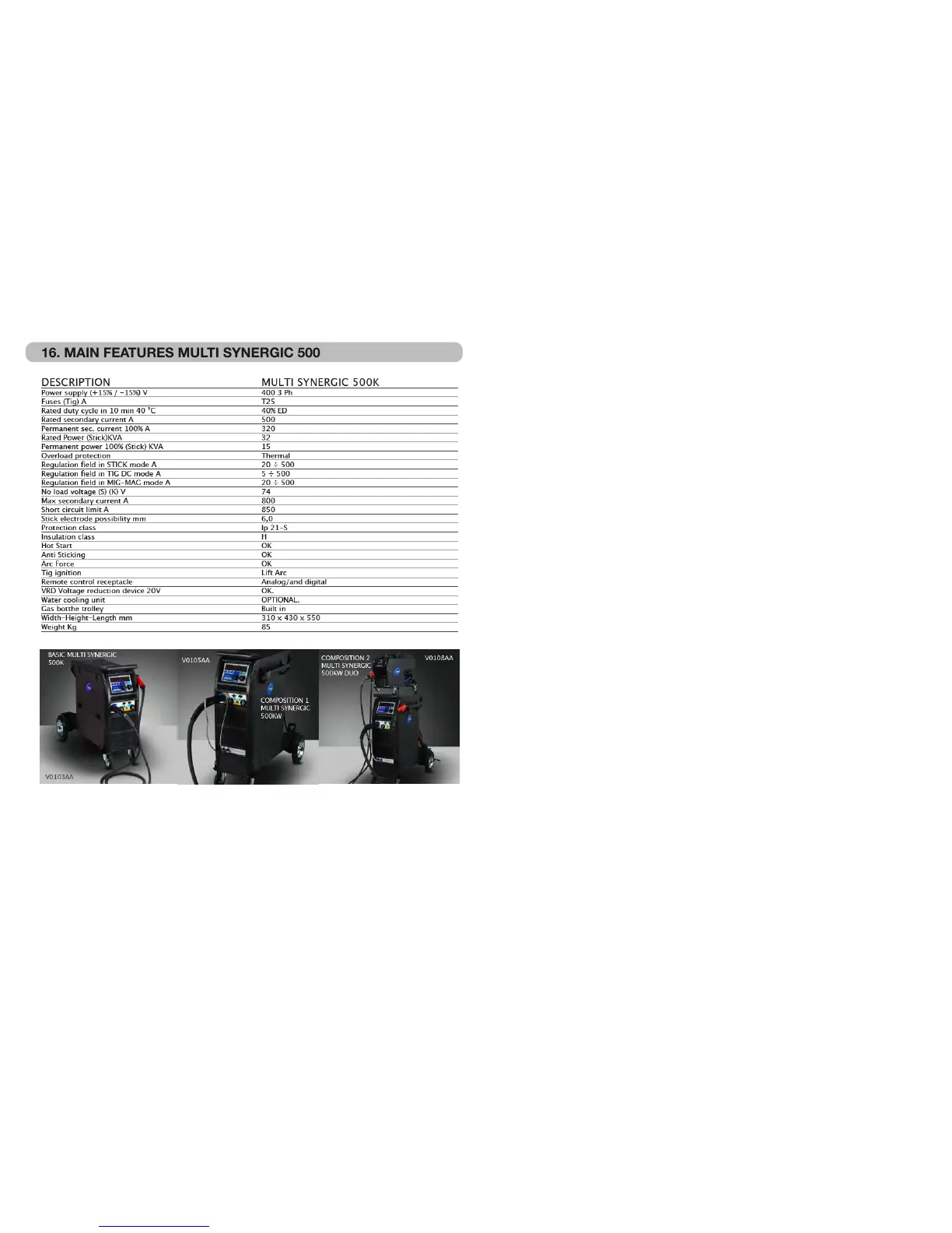 16. MAIN FEATURES MULTI SYNERGIC 500