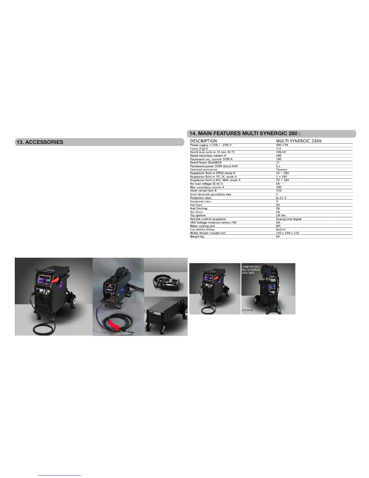 14. MAIN FEATURES MULTI SYNERGIC 280 :