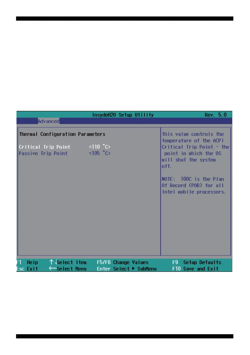 Critical Trip point is the shutdown temperature, the default value is 110˚