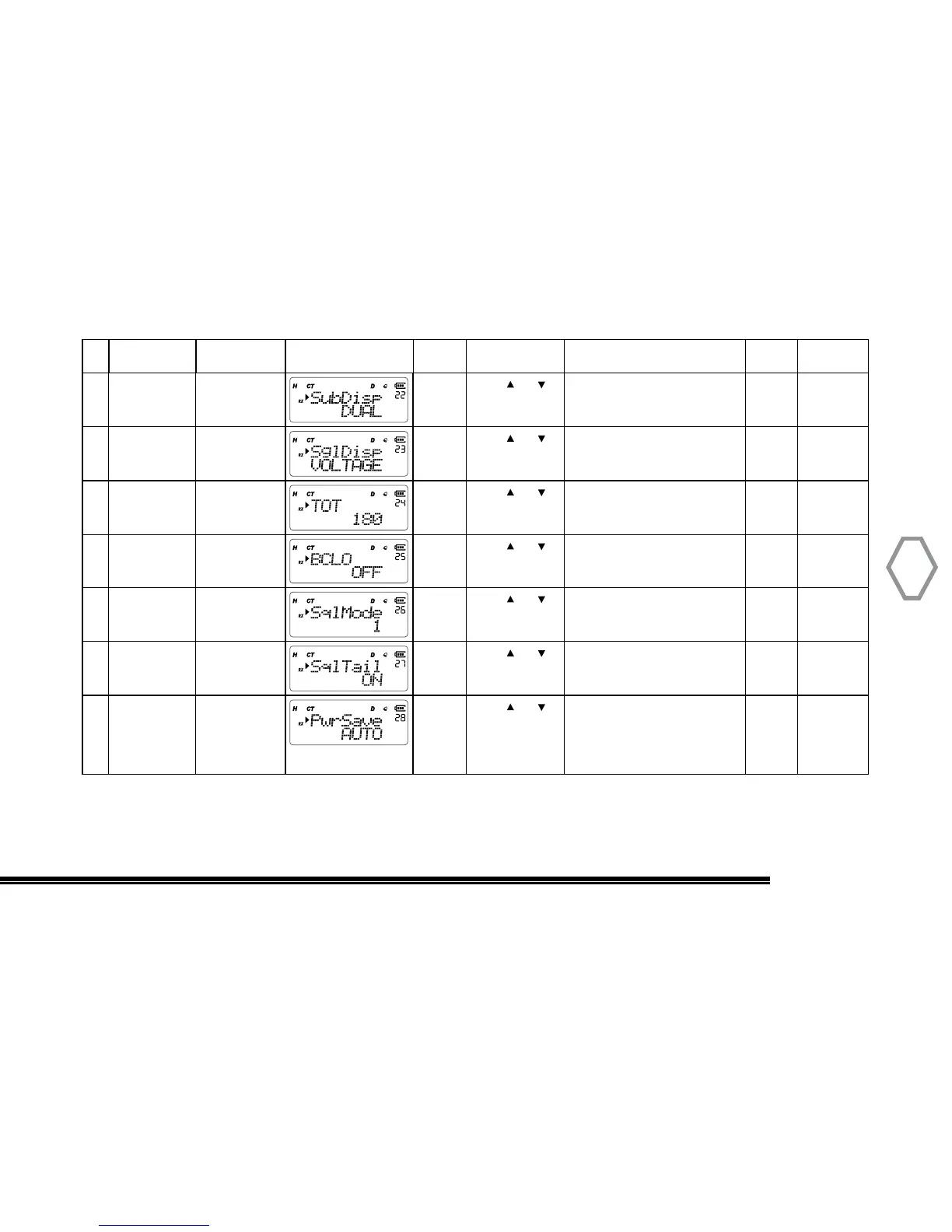 23 SglDisp “MENU” + “23” “MENU”