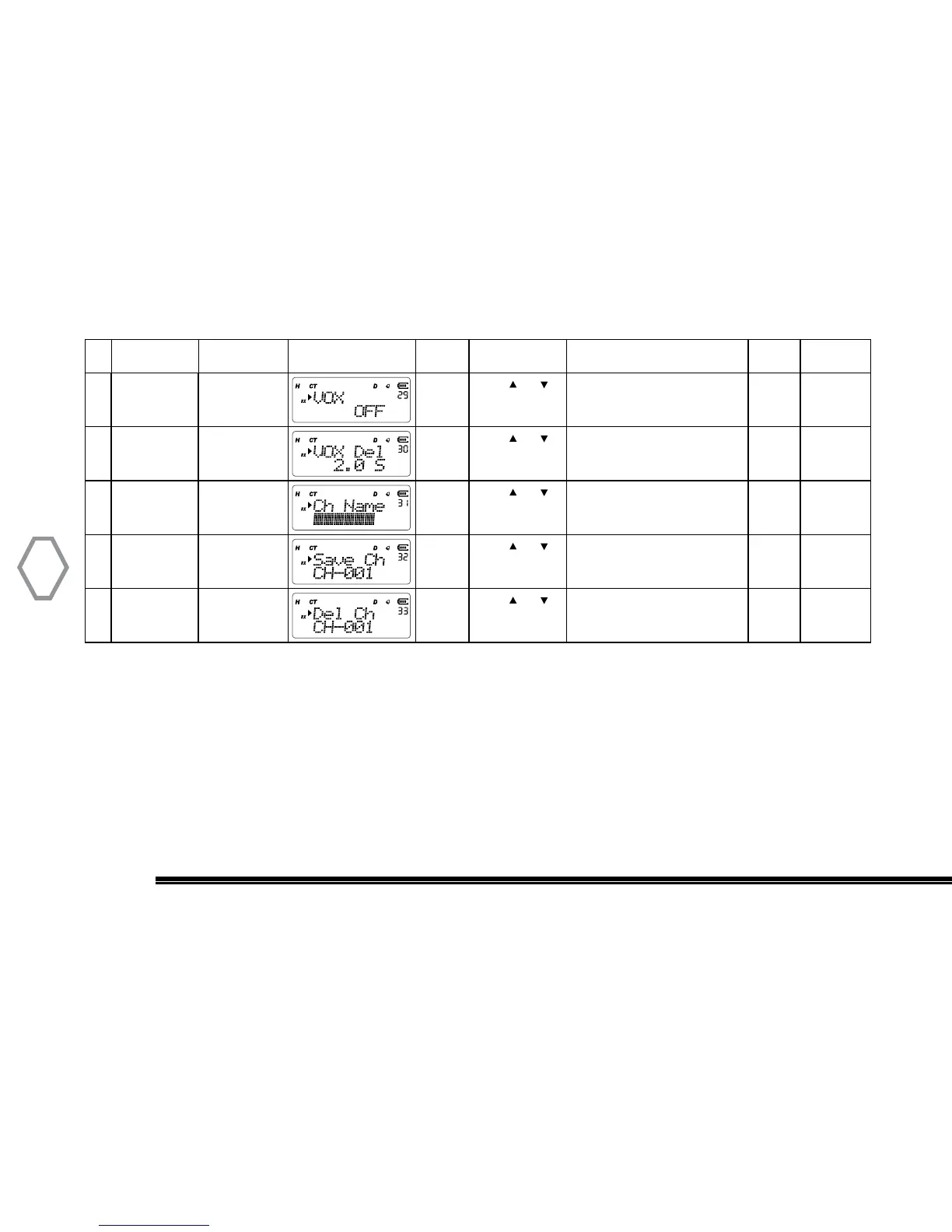 29 VOX Setting “MENU” + “29” “MENU”