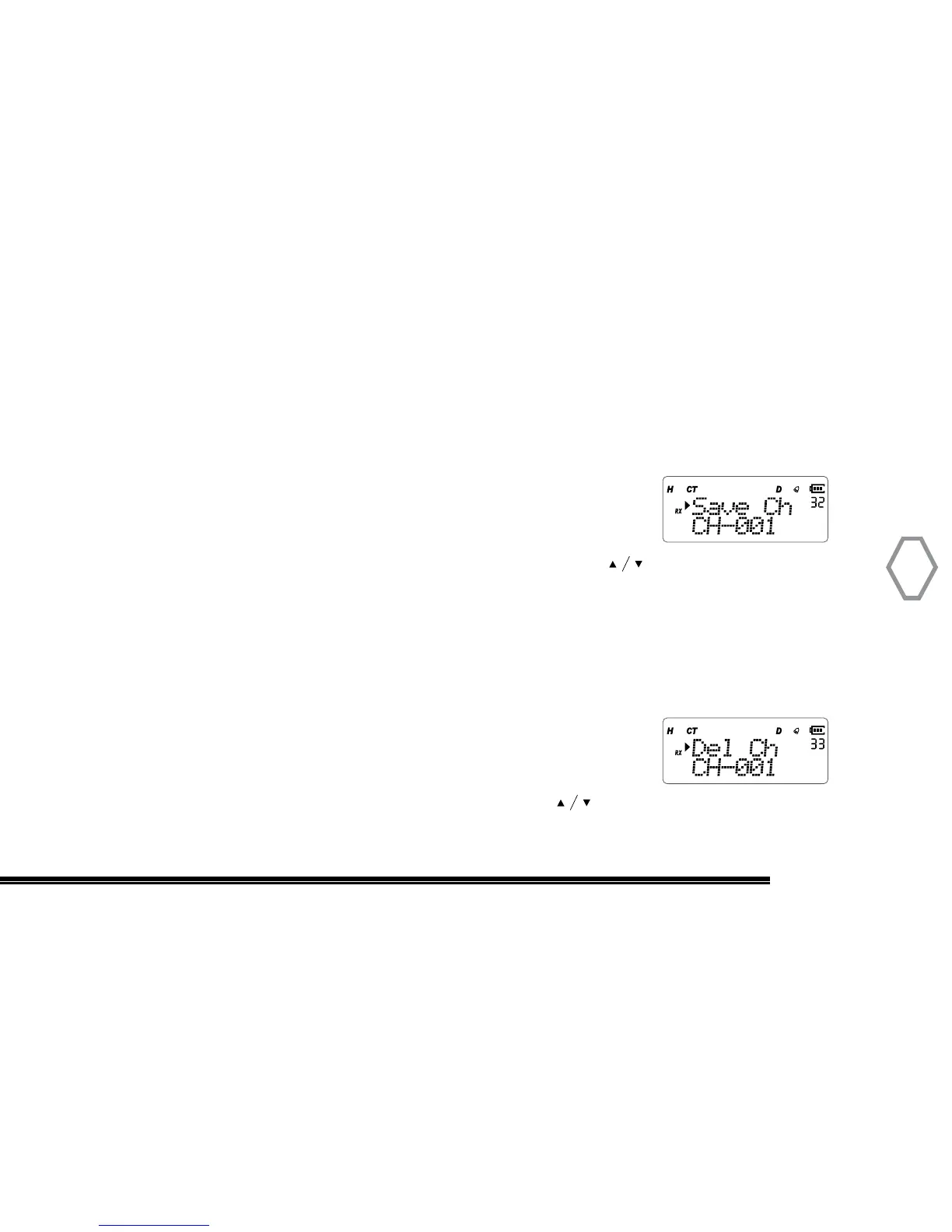 mode, transmitting and receive frequency will be saved into selected channel.