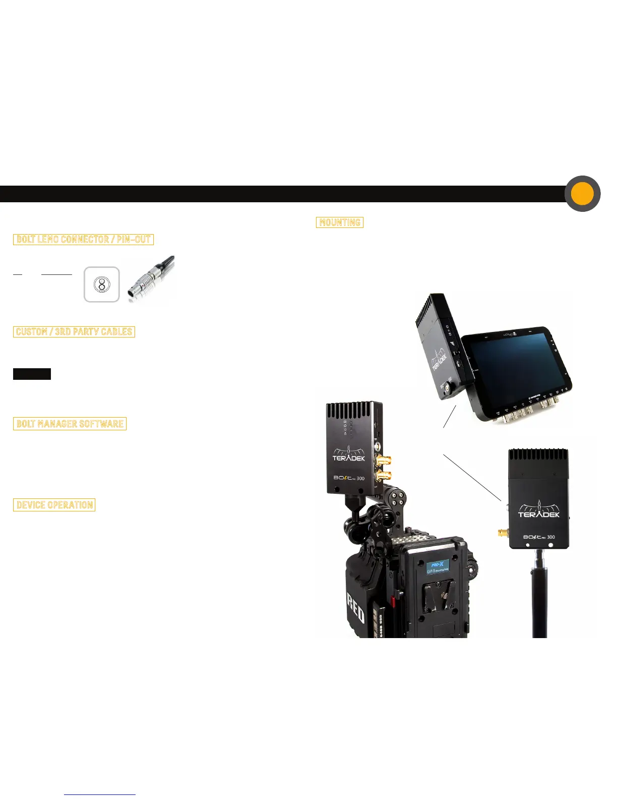 • Test the power cable polarity with ONLY the power cable connected to Bolt. Do not connect video cables.