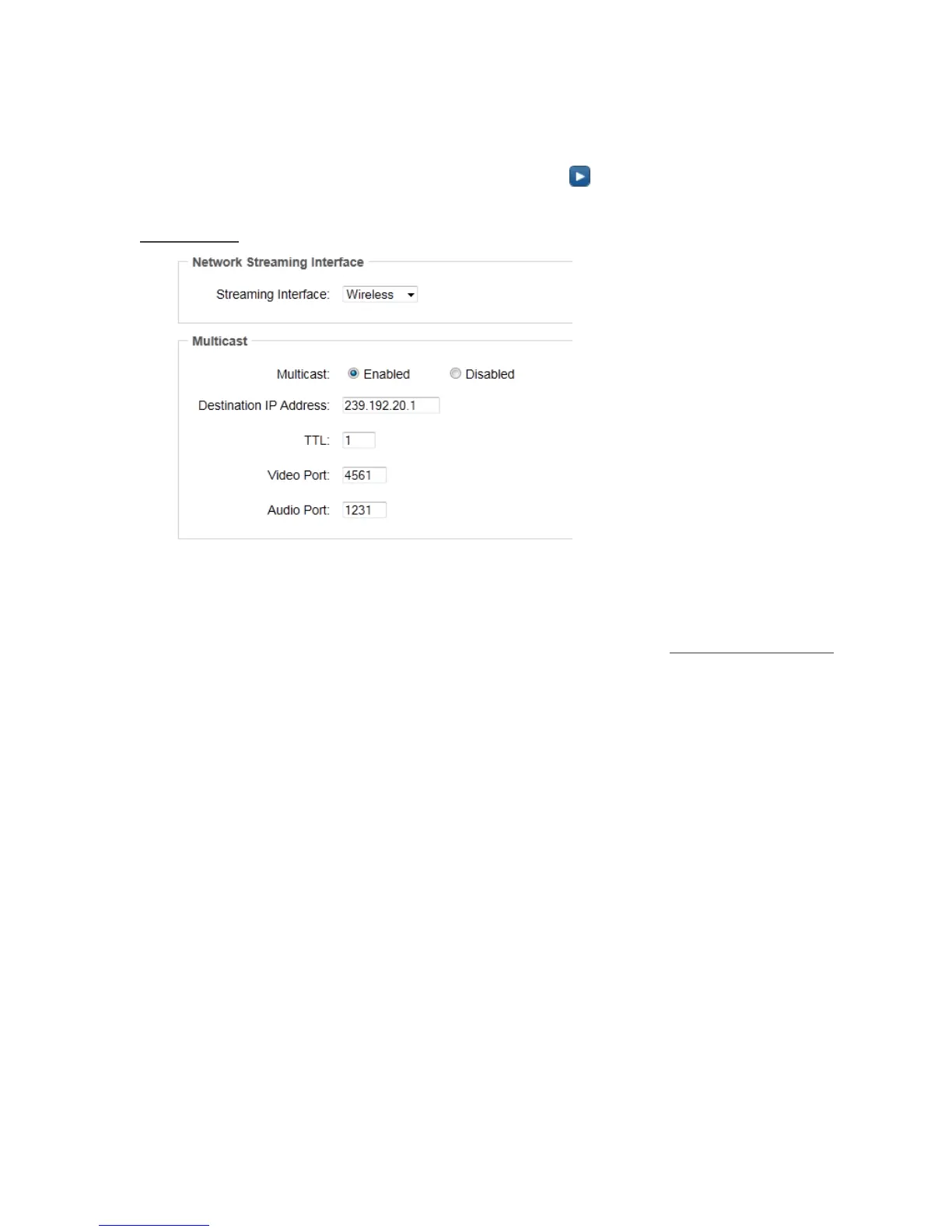 Setup -> Stream Settings page. Below that, select „Enabled‟ for Multicast. Enter a destination IP