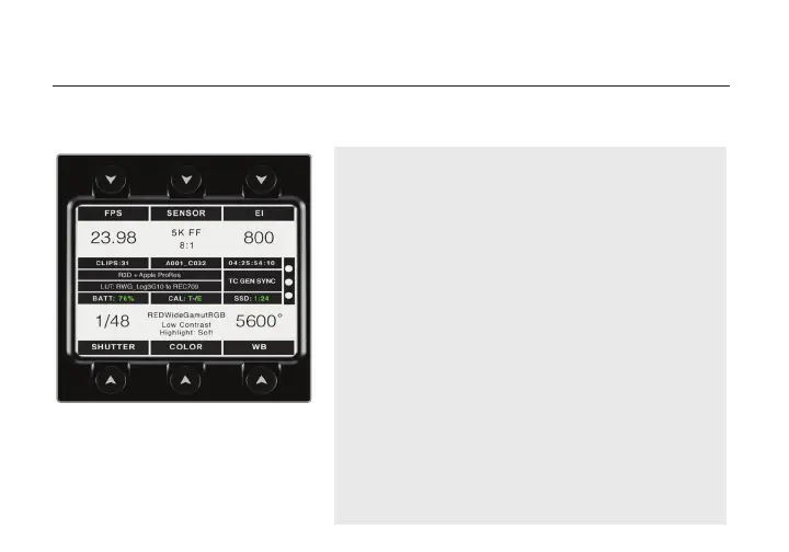 The Home screen allows the user to access and congure the most critical camera parameters. Press