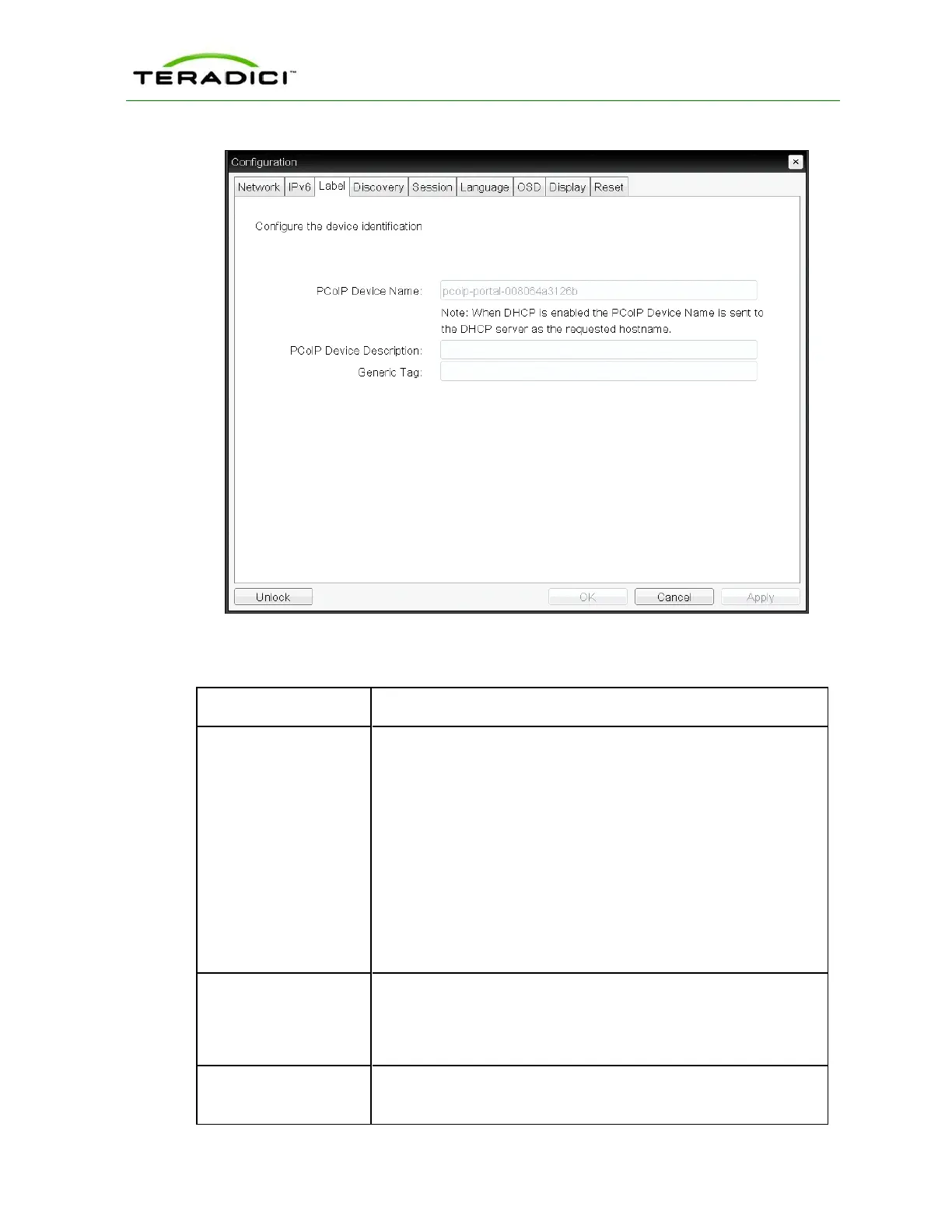 PCoIP Device Name Lets you give the host or client a logical name. The default is pcoip-