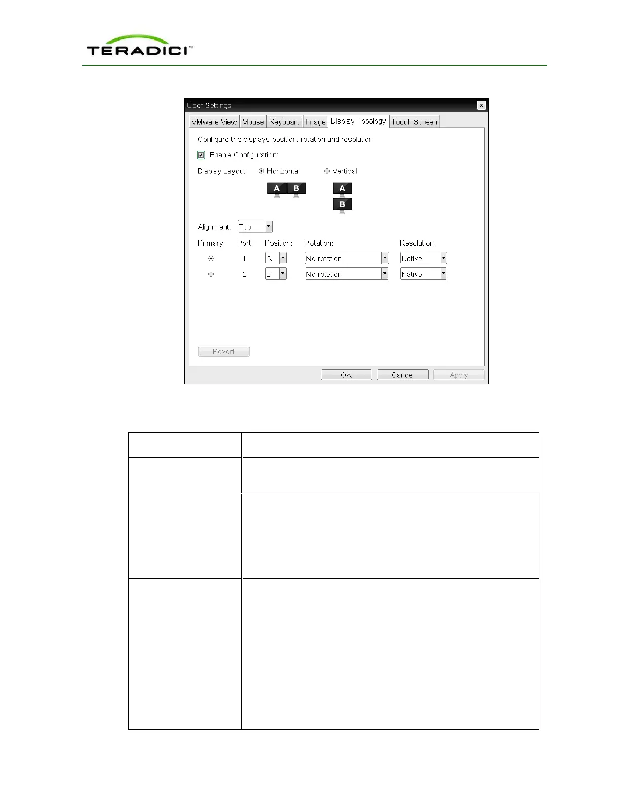 l Vertical: Select to arrange displays vertically, as indicated in the