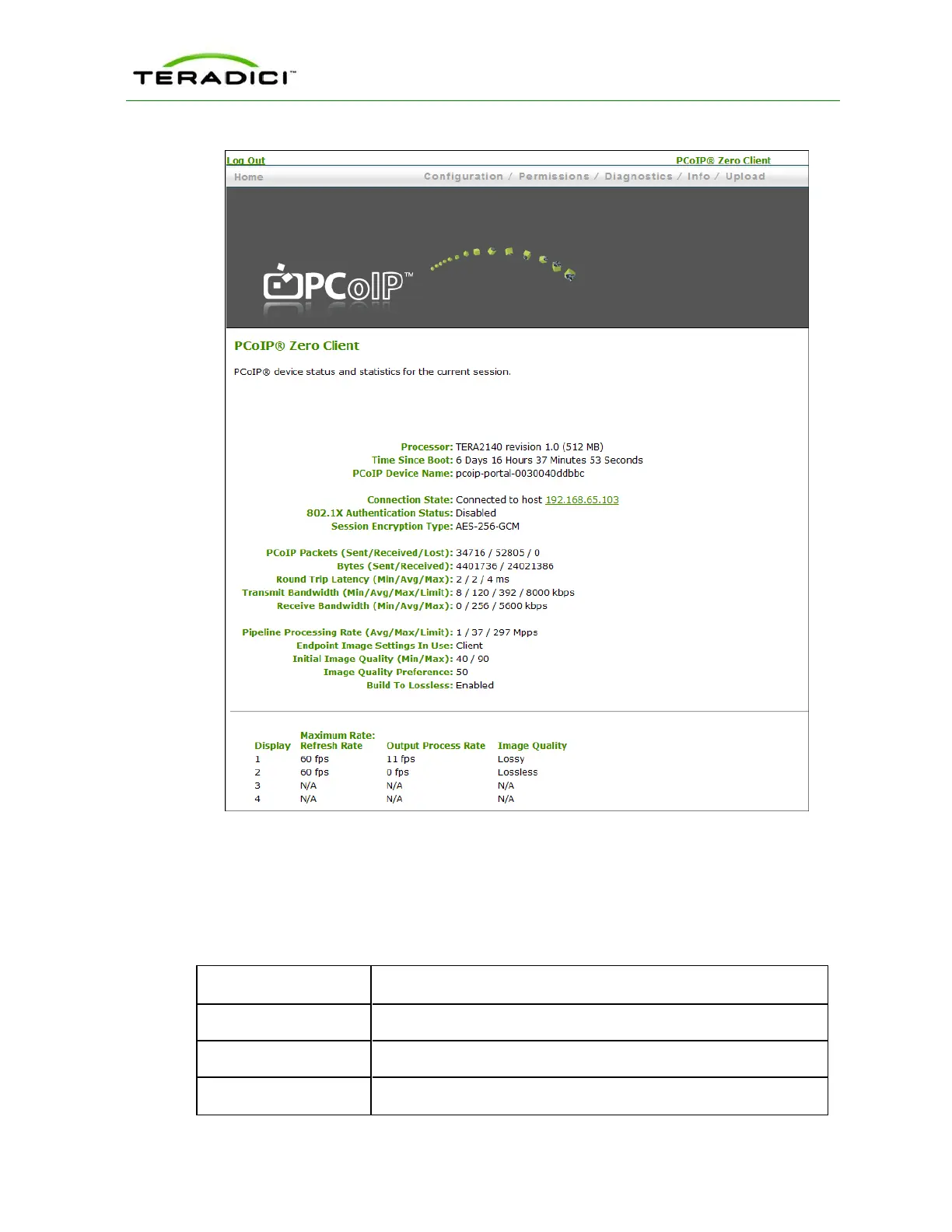 Time Since Boot Length of time that the PCoIP processor has been running.