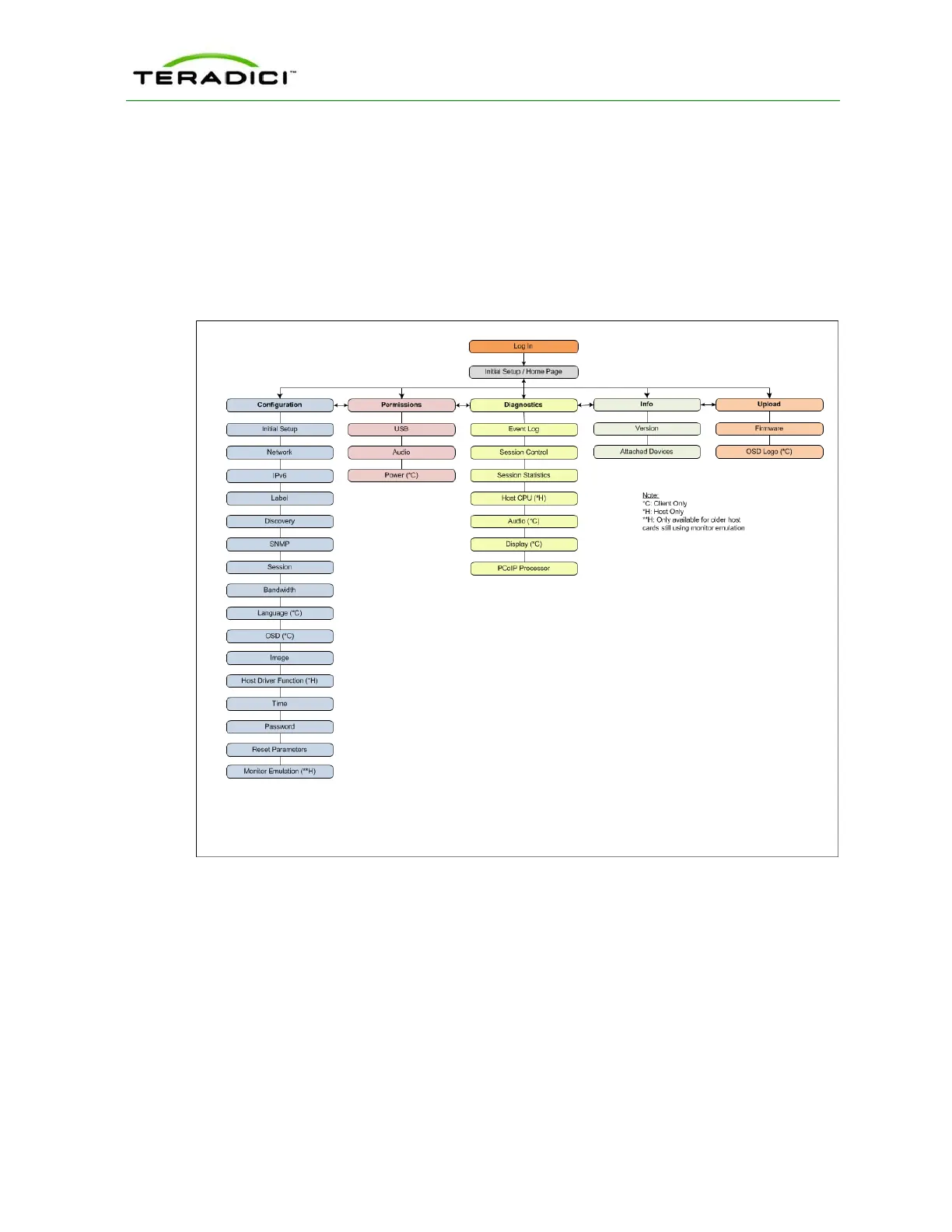 Note: The pages only available from the client are marked with a (*C) and the pages only