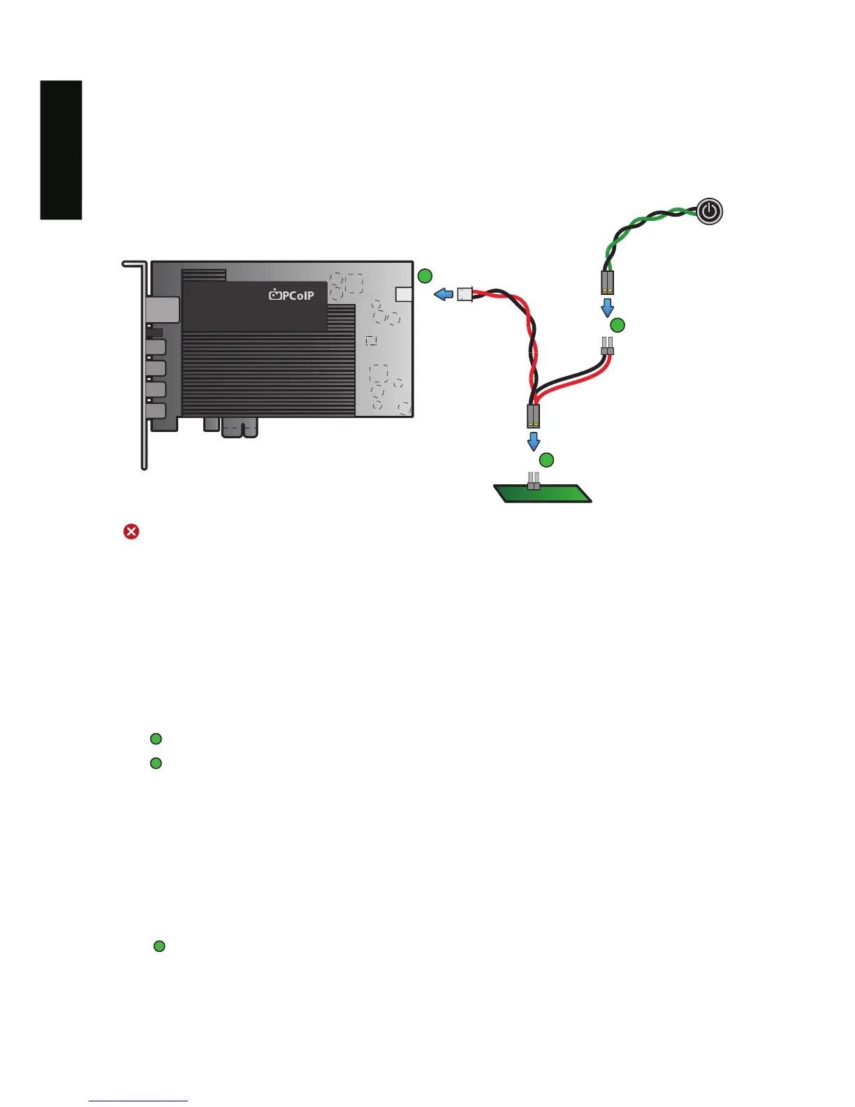 5. Подключите кабель кнопки включения/выключения питания к PCoIP карте хоста