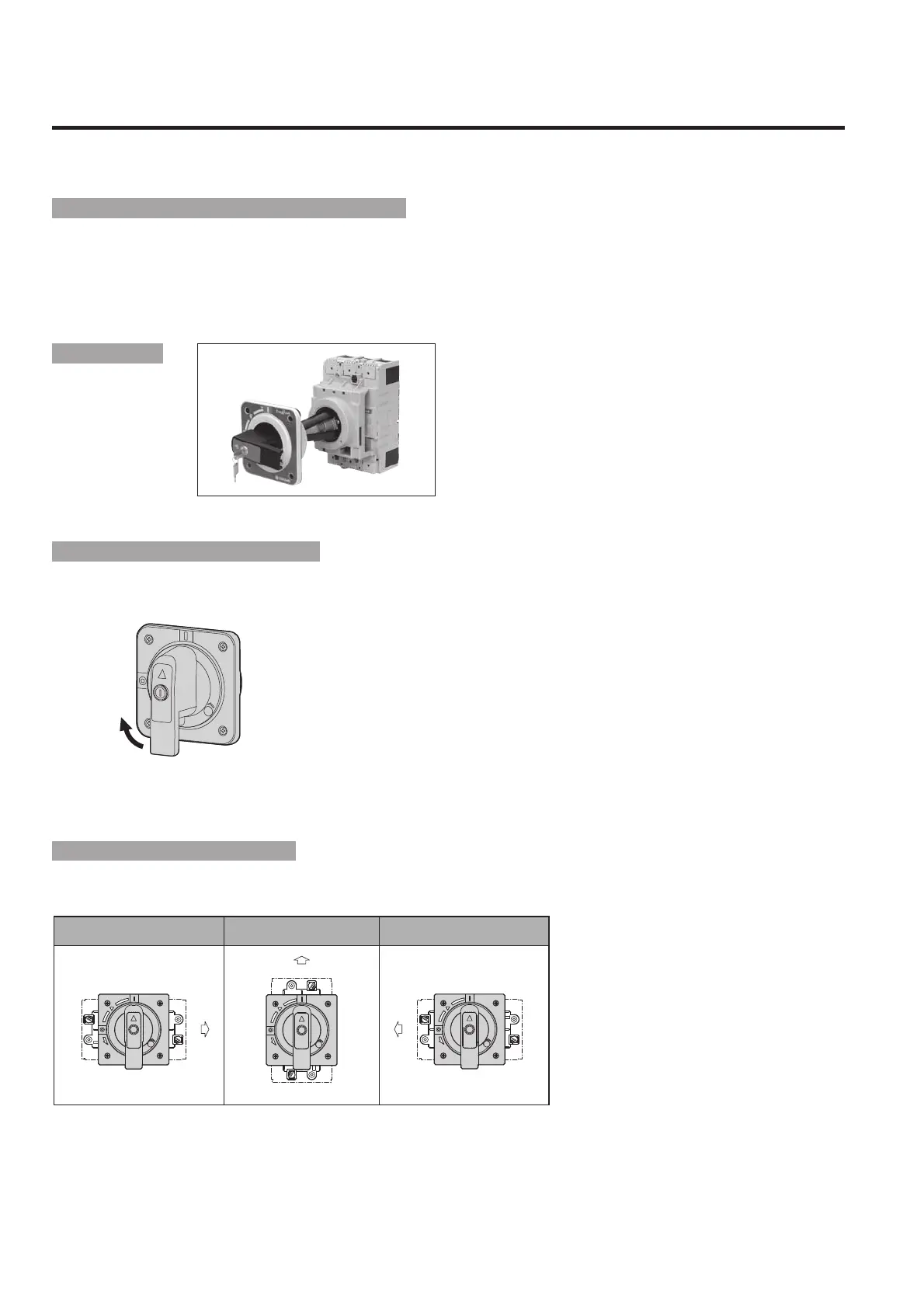 The ON and OFF positions of the handle and the positions of drilled holes in the panel do
