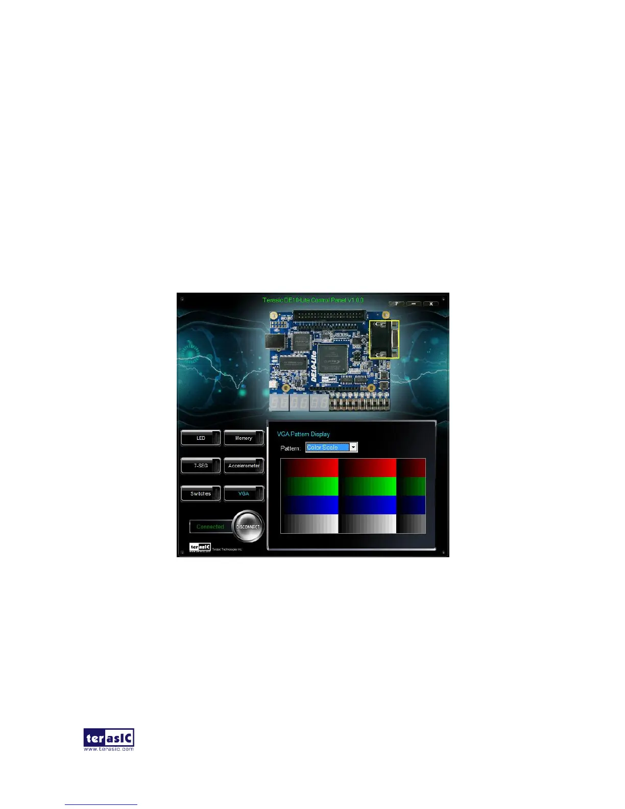 DE10-Lite Control Panel provides VGA pattern function that allows users to output color pattern to