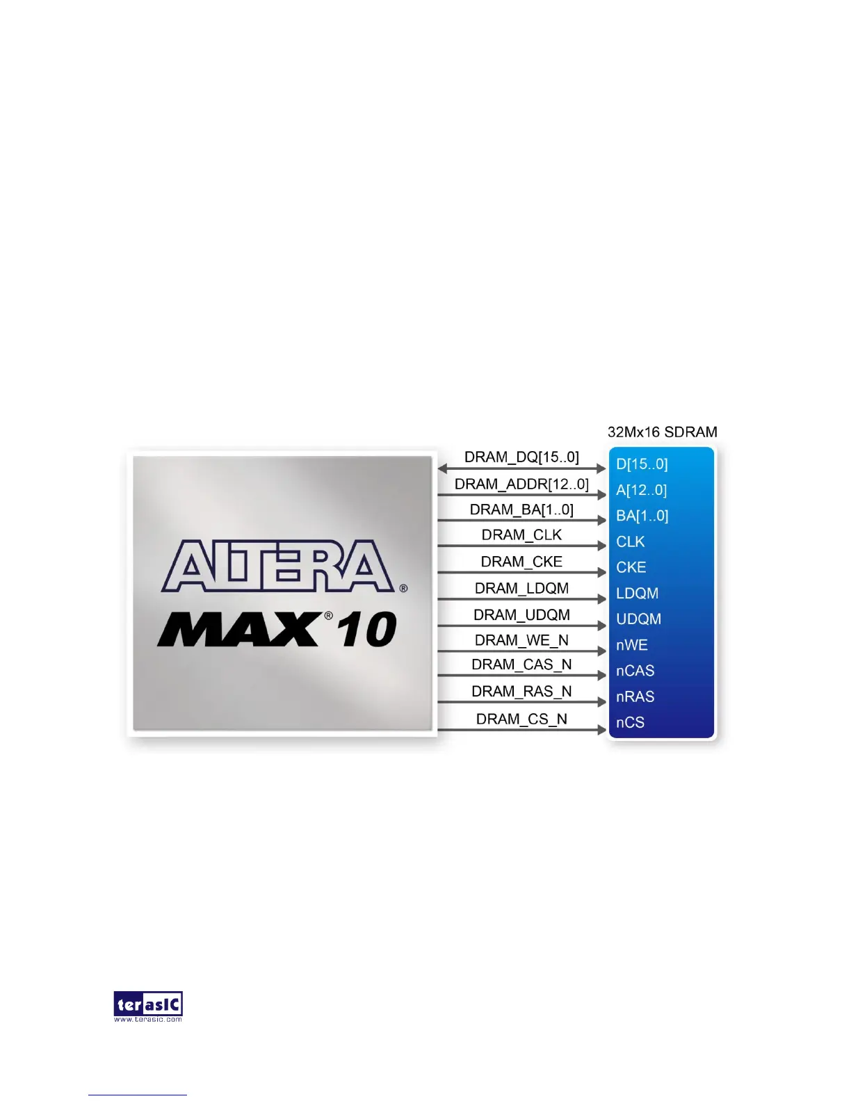 Figure 3-23 Connections between the SDRAM and MAX 10 FPGA